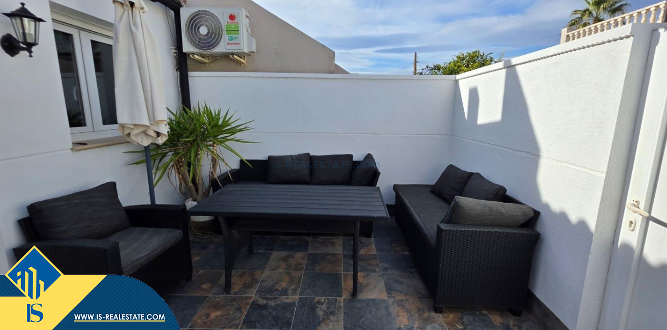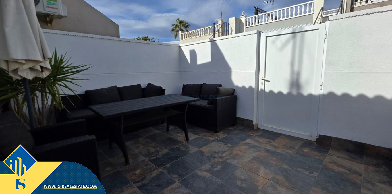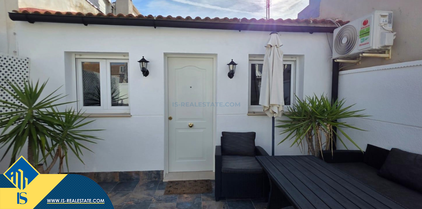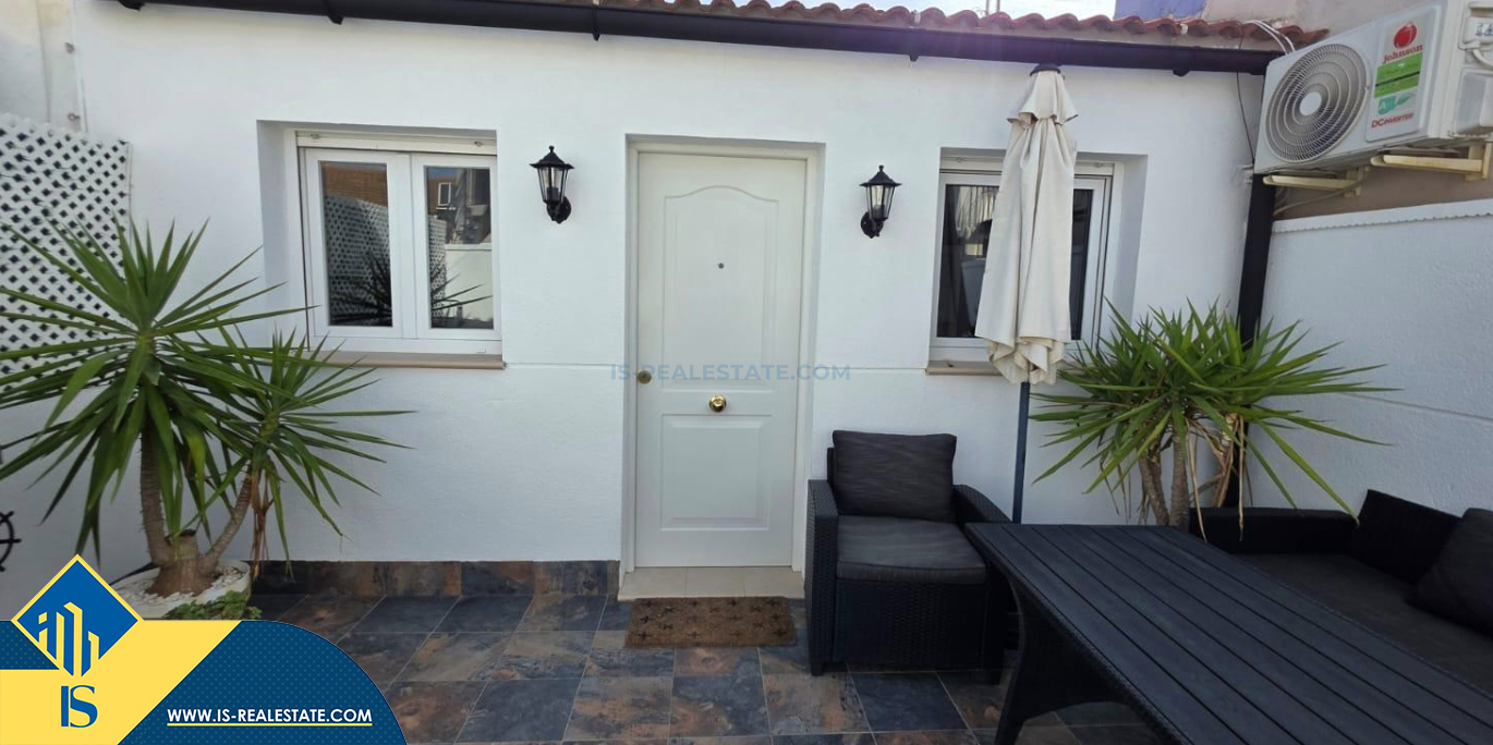 2-jų kambarių namas su terasa, Ispanijoje, Alicante provincijoje, Torrevieja mieste, Torreta rajone, bendras plotas 35 m², 2 kilometrai iki jūros, 45 kilometrai iki Alicante oro uosto. Turtui priklauso terasa. Netoli turto yra parduotuvės, restoranai, autobusų stotelės, vaikų zonos, degalinės, žalios zonos, kavinės, vaistinės