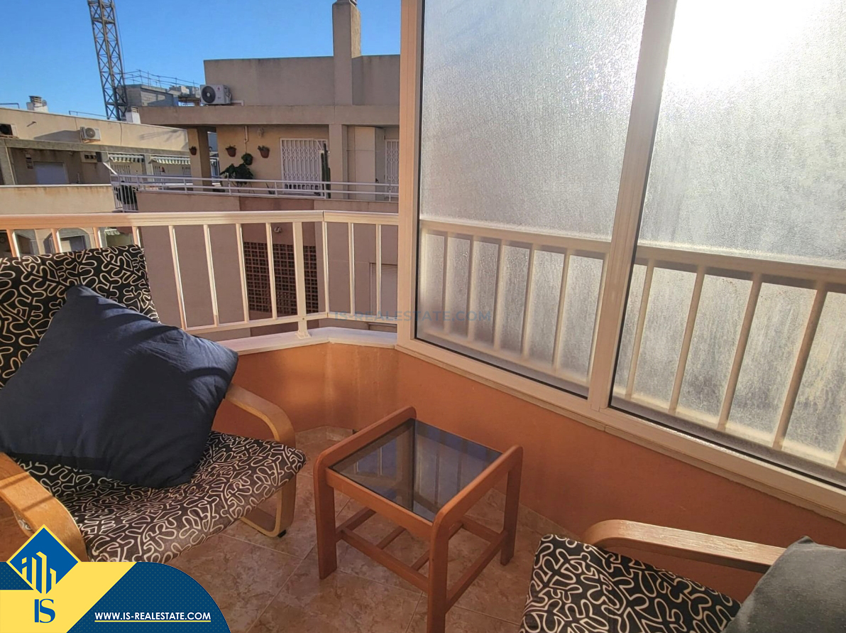 4-ių kambarių penthouse apartamentas su terasa, Ispanijoje, Alicante provincijoje, Torrevieja mieste, Playa de los Locos rajone, bendras plotas 90 m², 160 metrų iki jūros, 45 kilometrai iki Alicante oro uosto. Turtui priklauso terasa, soliariumas, liftas, garažas, sandėliukas. Netoli turto yra parduotuvės, restoranai, autobusų stotelės, degalinės, žalios zonos, kavinės, vaistinės