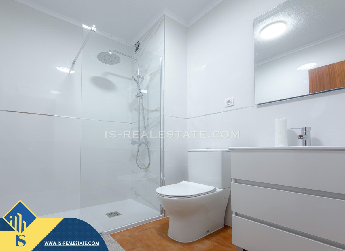 3-jų kambarių apartamentas su bendru baseinu, Ispanijoje, Alicante provincijoje, Torrevieja mieste, bendras plotas 68 m², 1.5 kilometro iki jūros, 45 kilometrai iki Alicante oro uosto. Turtui priklauso bendras baseinas, terasa. Netoli turto yra parduotuvės, restoranai, vaistinės, autobusų stotelės, degalinės, žalios zonos, kavinės