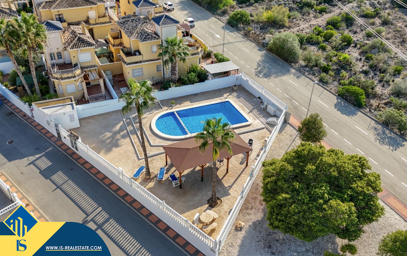 4-ių kambarių namas su privačiu baseinu, Ispanijoje, Alicante provincijoje, Algorfa mieste, bendras plotas 103 m², 12 kilometrų iki jūros, 44 kilometrai iki Alicante oro uosto. Turtui priklauso terasa, privatus baseinas, garažas, privatus kiemas. Netoli turto yra parduotuvės, restoranai, autobusų stotelės, vaikų zonos, degalinės, žalios zonos, kavinės, ligoninė