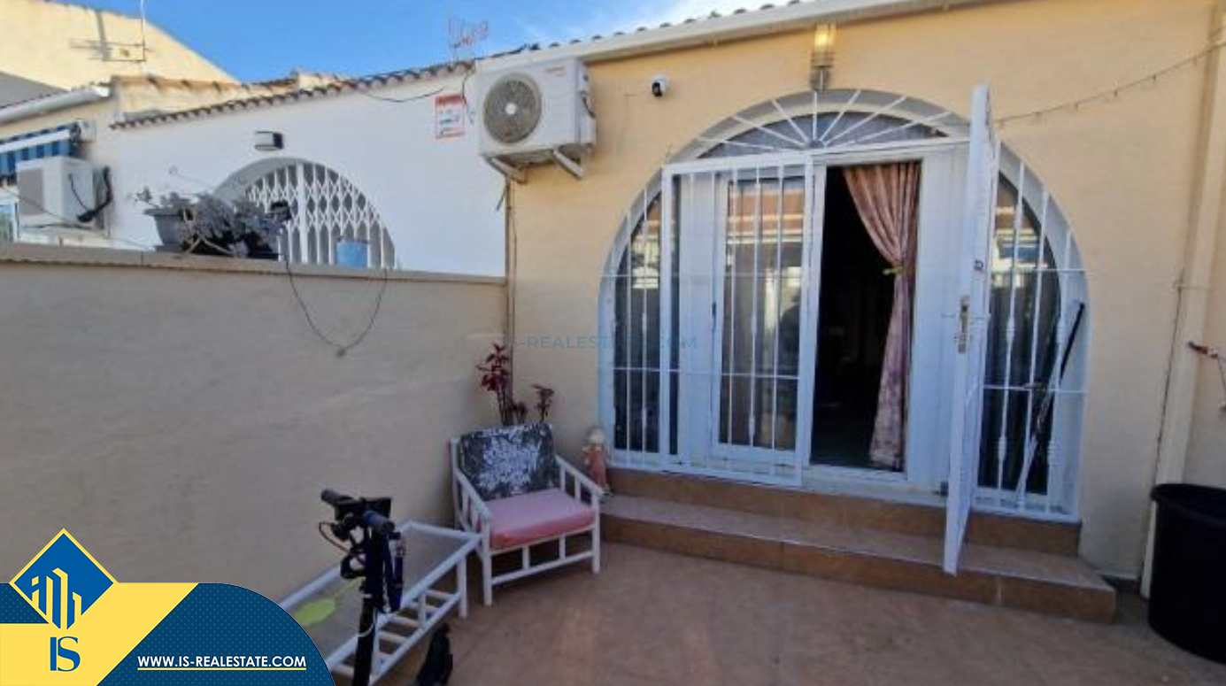 3-jų kambarių namas su terasa, Ispanijoje, Alicante provincijoje, Torrevieja mieste, El Chaparral rajone, bendras plotas 40 m², 5 kilometrai iki jūros, 45 kilometrai iki Alicante oro uosto. Turtui priklauso terasa. Netoli turto yra parduotuvės, restoranai, autobusų stotelės, vaikų zonos, degalinės, žalios zonos, kavinės, vaistinės