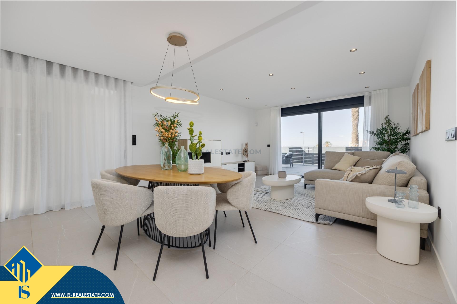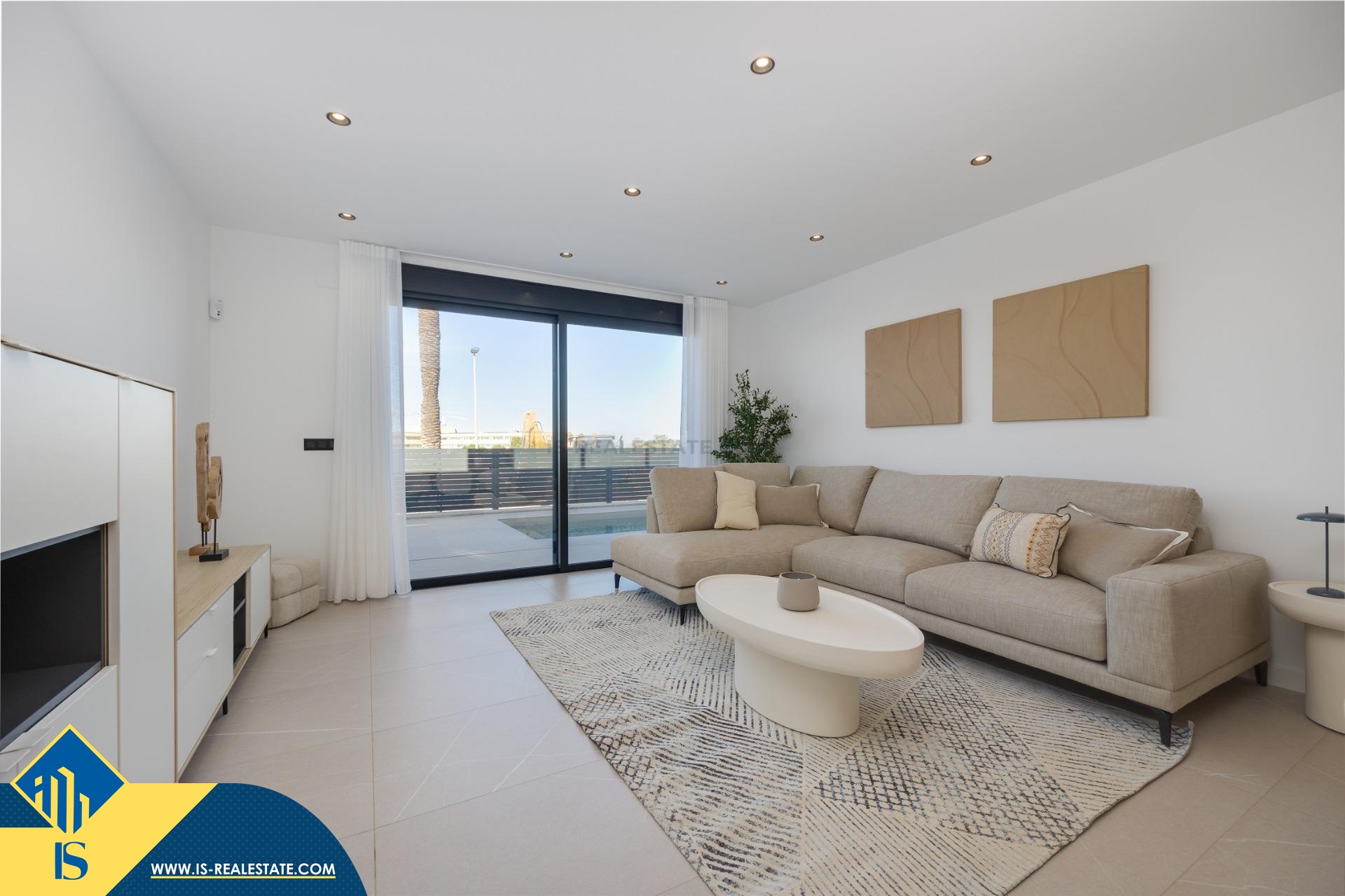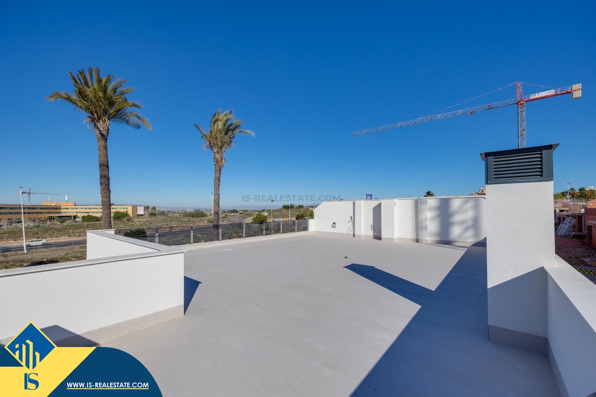 Statomi namai 4-ių kambarių, Ispanijoje, Alicante provincijoje, Torrevieja mieste, bendras plotas 142 m², 2 kilometrai iki jūros, 45 kilometrai iki Alicante miesto oro uosto. Turtui priklauso privatus baseinas, vieta automobiliui, soliariumas, terasa. Netoli turto yra parduotuvės, restoranai, autobusų stotelės, degalinės, žalios zonos, kavinės, vaistinės, pagrindinė promenada