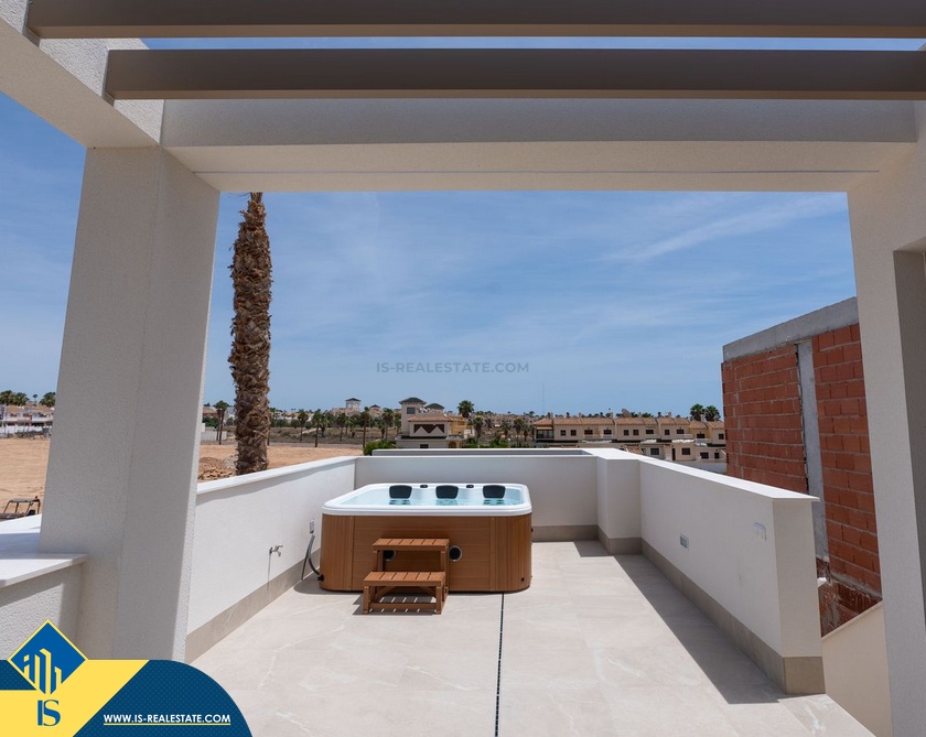 4-ių kambarių statomi namai su privačiu baseinu, Ispanijoje, Alicante provincijoje, Rojales, Ciudad Quesada mieste, bendras plotas 167 m², 6 kilometrai iki paplūdimio, 44 kilometrai iki Alicante miesto oro uosto. Turtui priklauso terasa, privatus baseinas, vieta automobiliui, soliariumas. Netoli turto yra parduotuvės, restoranai, autobusų stotelės, vaikų zonos, degalinės, žalios zonos, kavinės, vaistinės