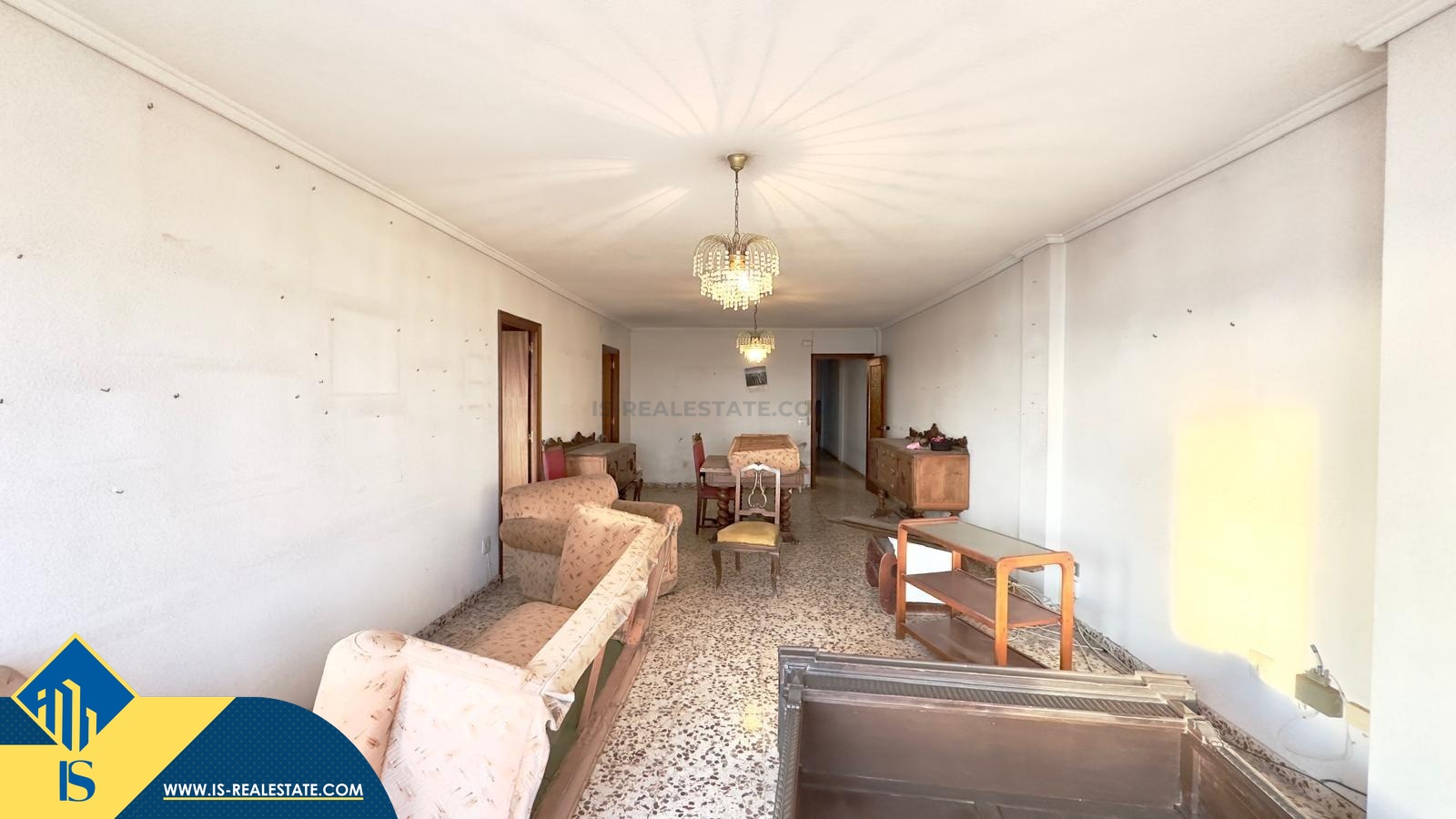 5-ių kambarių skirtas renovacijai apartamentas su terasa, Ispanijoje, Alicante provincija, Torrevieja mieste, Playa del Cura rajone, bendras plotas 132 m², 200 metrų iki jūros, 45 kilometrai iki Alicante miesto oro uosto. Turtui priklauso terasa, liftas. Netoli turto yra parduotuvės, restoranai, vaistinės, autobusų stotelės, degalinės, žalios zonos, kavinės, Habaneras alėja