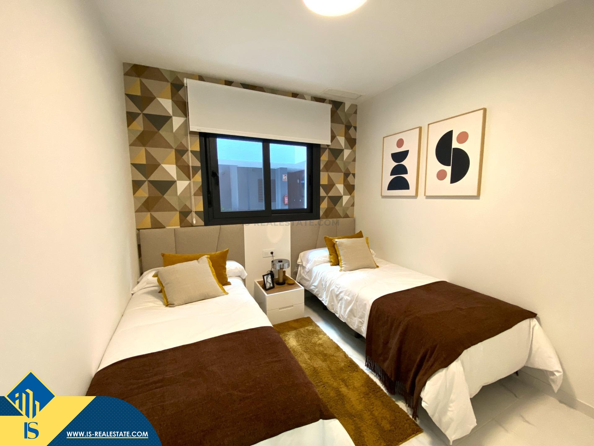 3-jų kambarių apartamentas su bendru baseinu, Ispanijoje, Alicante provincijoje, Torrevieja mieste, Torreta rajone, bendras plotas 106 m², 3 kilometrai, 45 kilometrai iki Alicante miesto oro uosto. Turtui priklauso bendras baseinas, terasa, vieta automobiliui. Netoli turto yra parduotuvės, restoranai, autobusų stotelės, degalinės, žalios zonos, kavinės, vaistinės