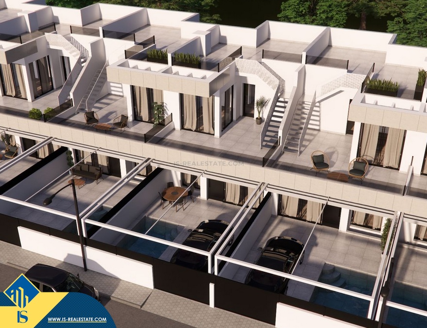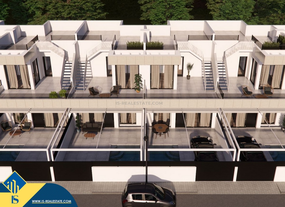 4-ių kambarių statomi namai su privačiu baseinu, Ispanijoje, Alicante provincijoje, Rojales, Ciudad Quesada mieste, bendras plotas 124 m², 7 kilometrai iki paplūdimio, 44 kilometrai iki Alicante miesto oro uosto. Turtui priklauso terasa, privatus baseinas, vieta automobiliui, soliariumas. Netoli turto yra parduotuvės, restoranai, autobusų stotelės, vaikų zonos, degalinės, žalios zonos, kavinės, vaistinės