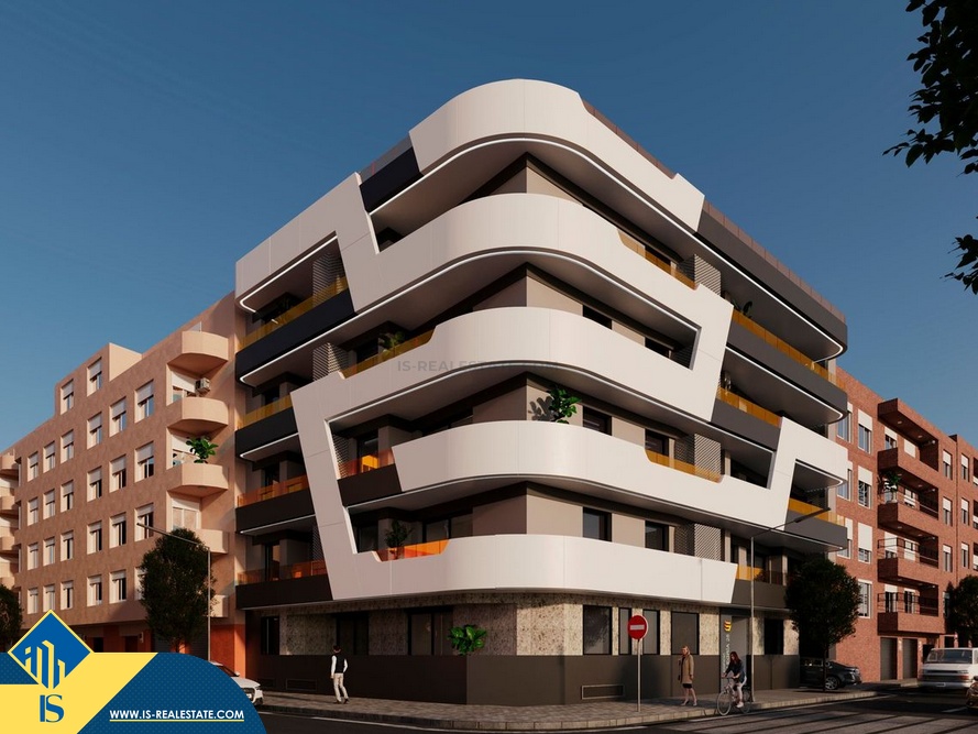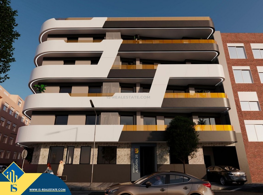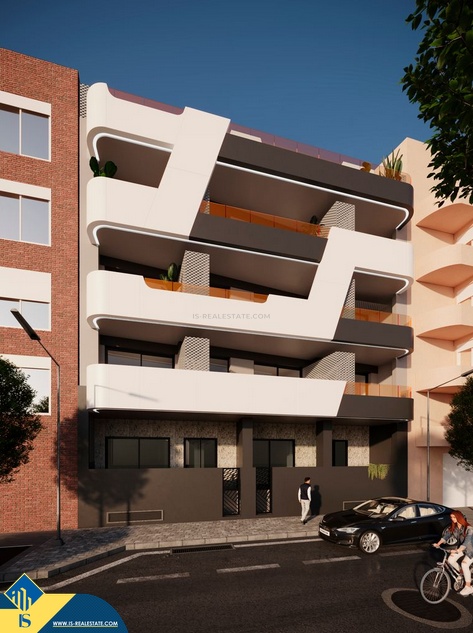 Statomi apartamentai 3-jų kambarių, Ispanijoje, Alicante provincijoje, Torrevieja mieste, bendras plotas 93 m², 600 metrų iki jūros, 45 kilometrai iki Alicante miesto oro uosto. Turtui priklauso terasa, bendras baseinas, vieta automobiliui. Netoli turto yra parduotuvės, restoranai, autobusų stotelės, degalinės, žalios zonos, kavinės, vaistinės, pagrindinė promenada