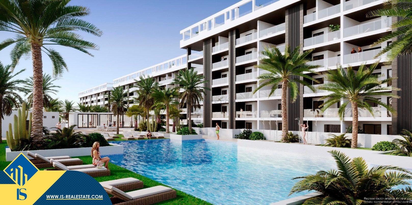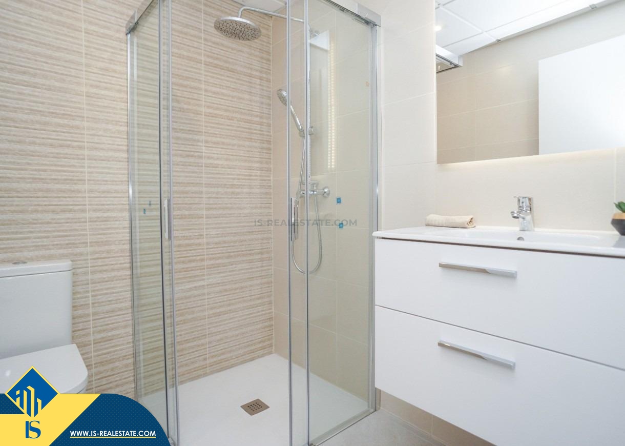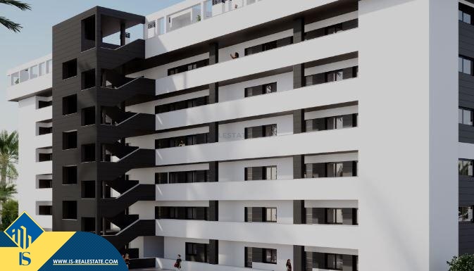 Statomi apartamentai 4-ių kambarių, Ispanijoje, Alicante provincijoje, Torrevieja mieste, bendras plotas 262 m², 800 metrų iki jūros, 45 kilometrai iki Alicante miesto oro uosto. Turtui priklauso bendras baseinas, terasa, vieta automobiliui, soliariumas. Netoli turto yra parduotuvės, restoranai, autobusų stotelės, degalinės, žalios zonos, kavinės, vaistinės, pagrindinė promenada