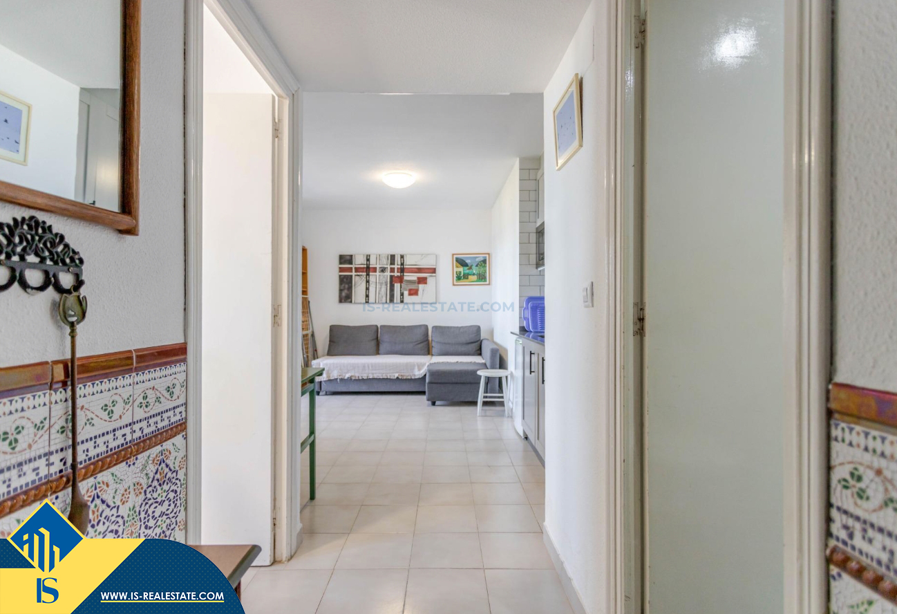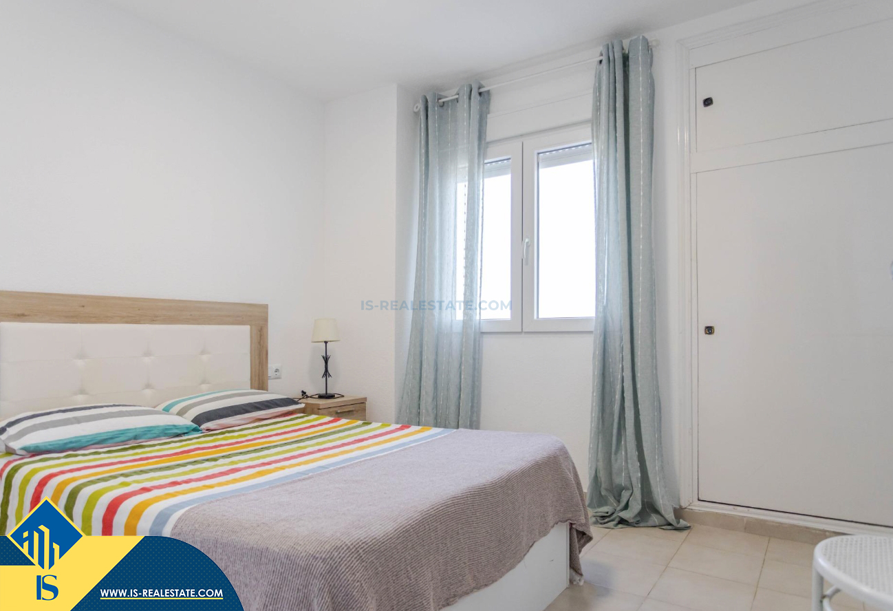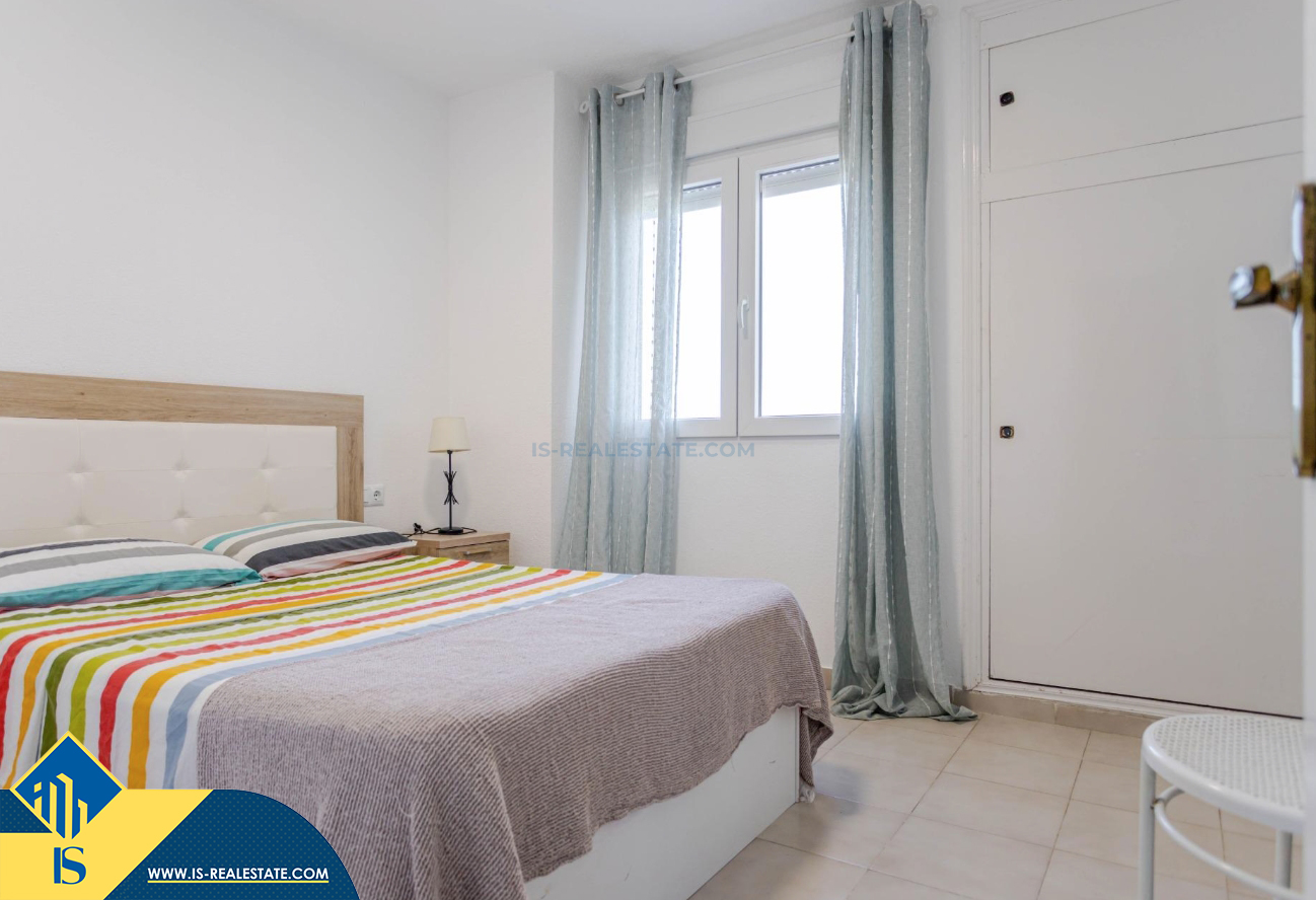 2-jų kambarių apartamentas su terasa, Ispanijoje, Alicante provincijoje, Torrevieja mieste, bendras plotas 50 m², 300 metrų iki jūros, 45 kilometrai iki Alicante oro uosto. Turtui priklauso terasa, liftas, garažas. Netoli turto yra parduotuvės, restoranai, vaistinės, autobusų stotelės, degalinės, žalios zonos, kavinės