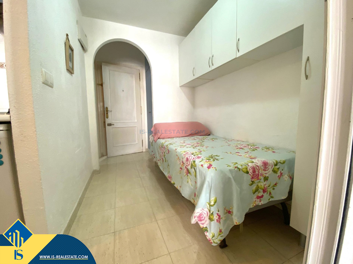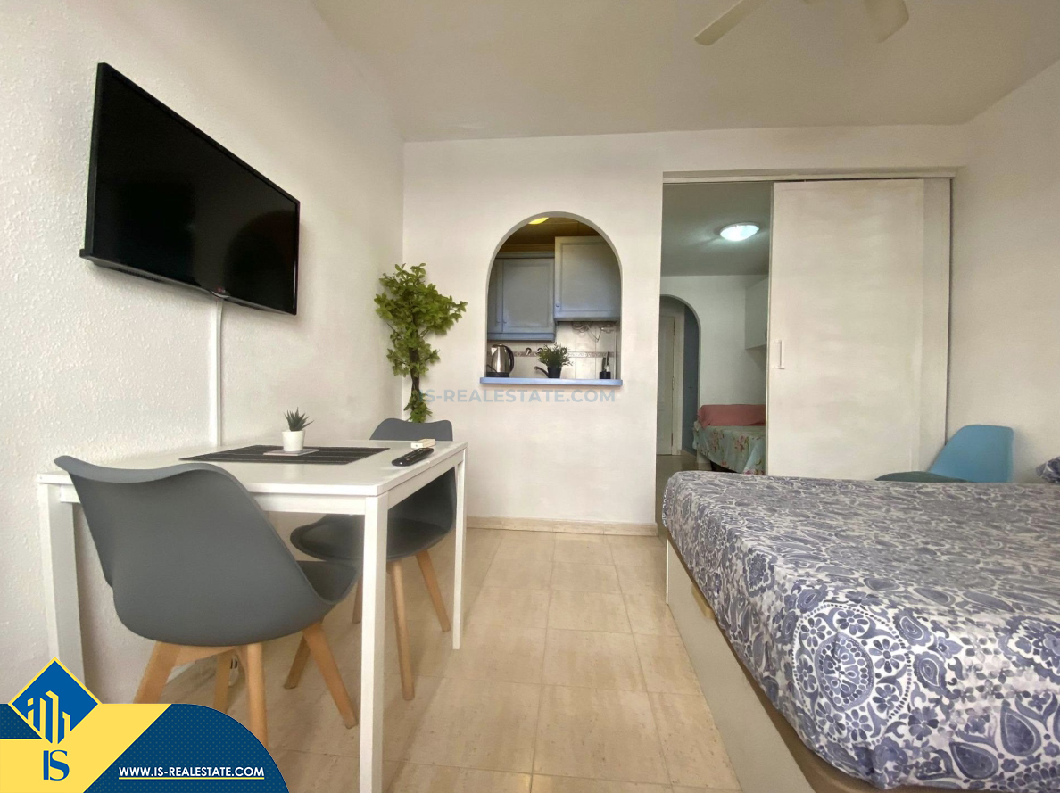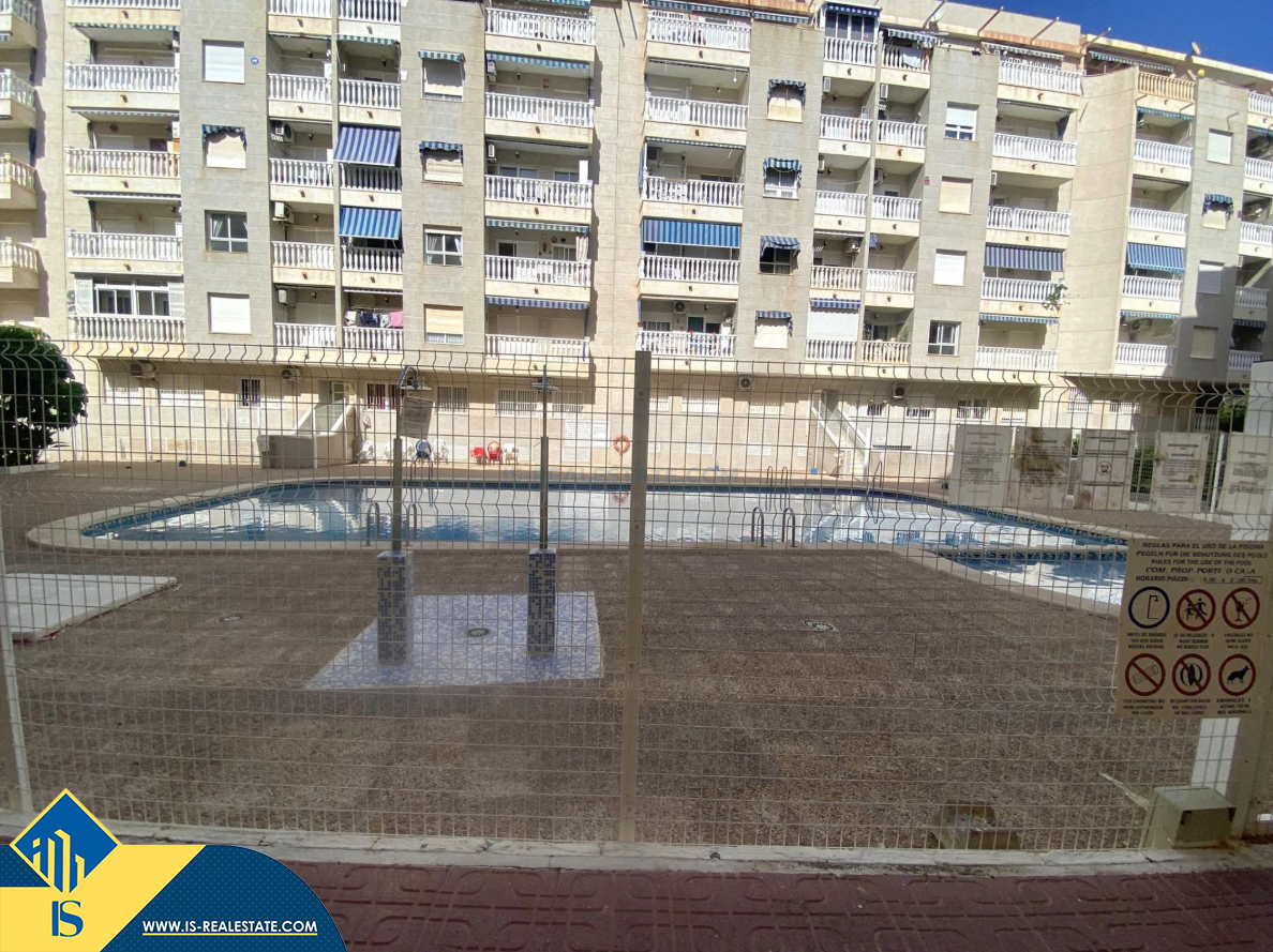 2-jų kambarių apartamentas su bendru baseinu, Ispanijoje, Alicante provincijoje, Torrevieja mieste, bendras plotas 27 m², 700 metrų iki jūros, 45 kilometrai iki Alicante oro uosto. Turtui priklauso bendras baseinas, liftas. Netoli turto yra parduotuvės, restoranai, vaistinės, autobusų stotelės, degalinės, žalios zonos, kavinės
