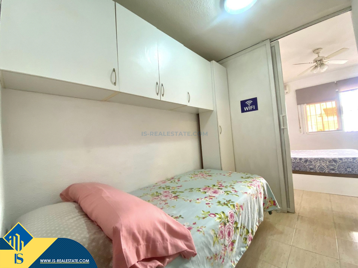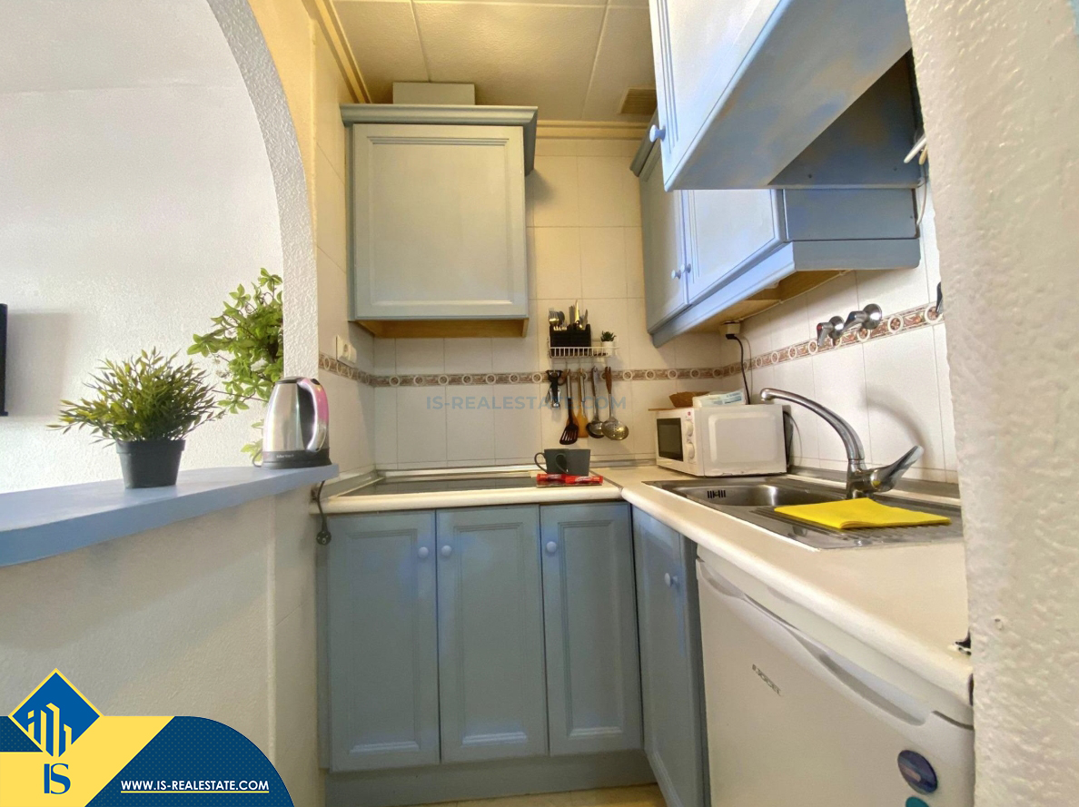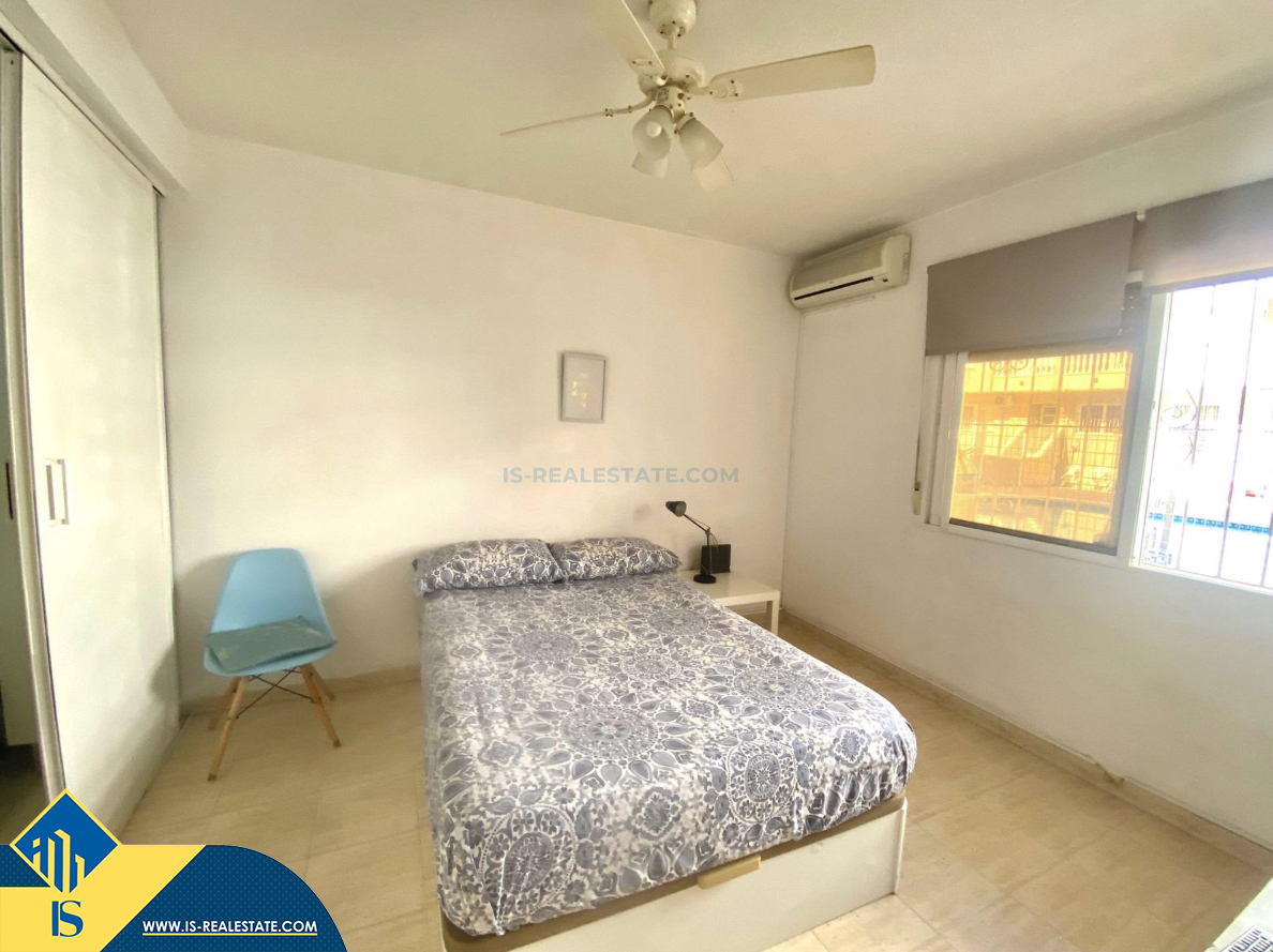 2-jų kambarių apartamentas su bendru baseinu, Ispanijoje, Alicante provincijoje, Torrevieja mieste, bendras plotas 27 m², 700 metrų iki jūros, 45 kilometrai iki Alicante oro uosto. Turtui priklauso bendras baseinas, liftas. Netoli turto yra parduotuvės, restoranai, vaistinės, autobusų stotelės, degalinės, žalios zonos, kavinės