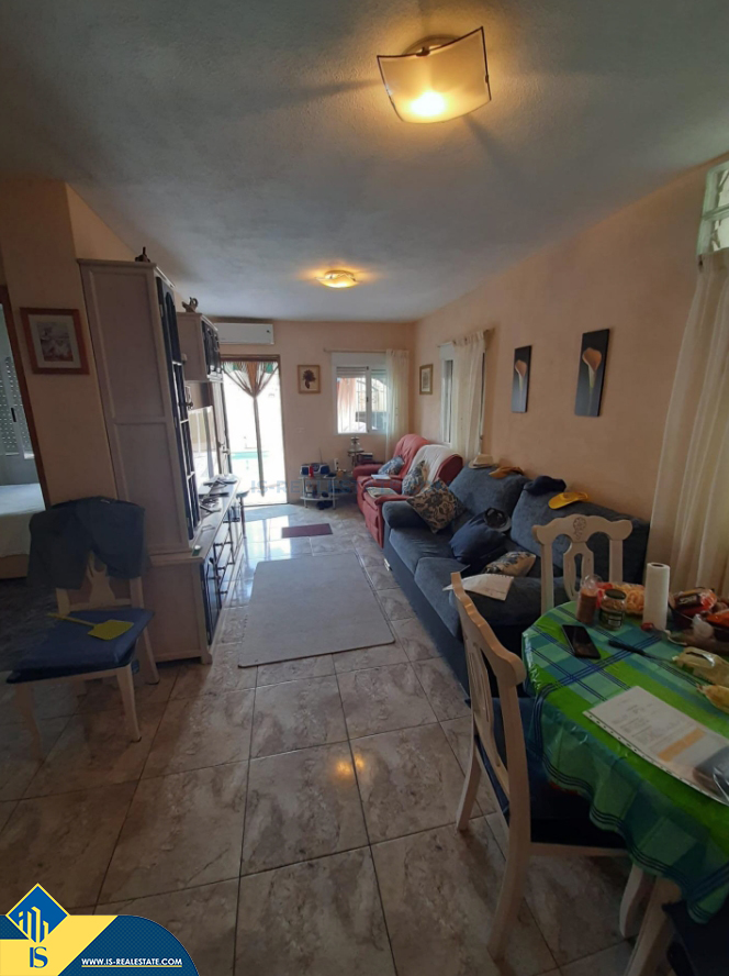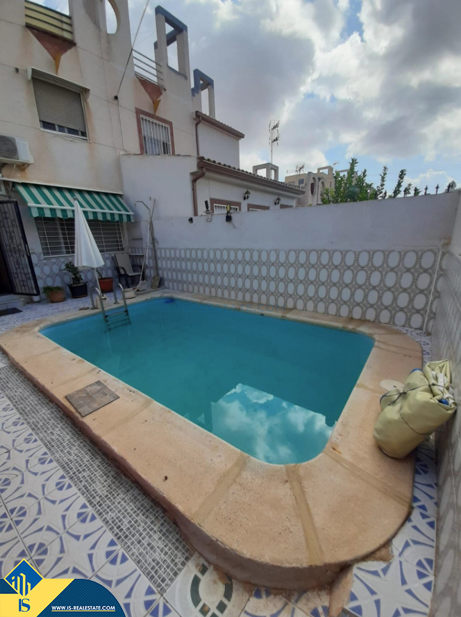 5-ių kambarių namas su privačiu baseinu, Ispanijoje, Alicante provincijoje, Torrevieja mieste, Torreta rajone, bendras plotas 86 m², 3 kilometrai iki jūros, 45 kilometrai iki Alicante oro uosto. Turtui priklauso terasa, soliariumas, privatus baseinas, vieta automobiliui, sandėliukas. Netoli turto yra parduotuvės, restoranai, autobusų stotelės, vaikų zonos, degalinės, žalios zonos, kavinės, vaistinės
