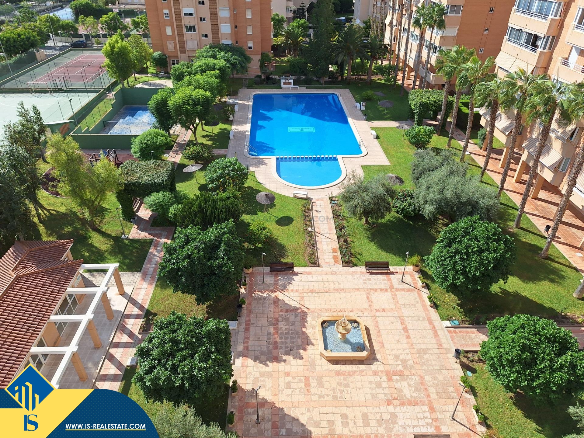 3-jų kambarių apartamentas su bendru baseinu, Ispanijoje, Alicante provincijoje, Alicante mieste, bendras plotas 107 m², 600 metrų iki jūros, 7 kilometrai iki Alicante oro uosto. Turtui priklauso bendras baseinas, terasa, liftas, garažas. Netoli turto yra parduotuvės, restoranai, vaistinės, autobusų stotelės, degalinės, žalios zonos, kavinės