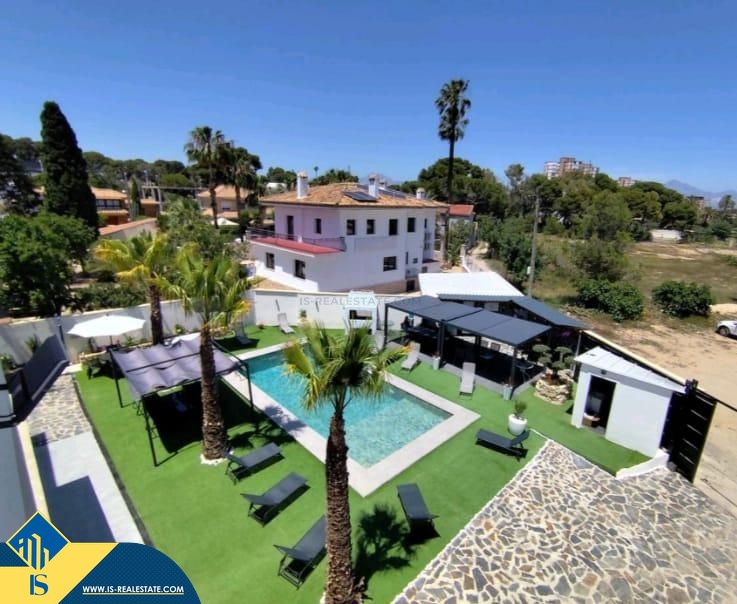 5-ių kambarių vila su privačiu, Ispanijoje, Alicante provincijoje, Alicante mieste, bendras plotas 360 m², 800 metrų iki jūros, 5 kilometrai iki oro uosto. Turtui priklauso privatus baseinas, vieta automobiliui, terasa. Netoli turto yra parduotuvės, restoranai, autobusų stotelės, degalinės, žalios zonos, kavinės, mokyklos