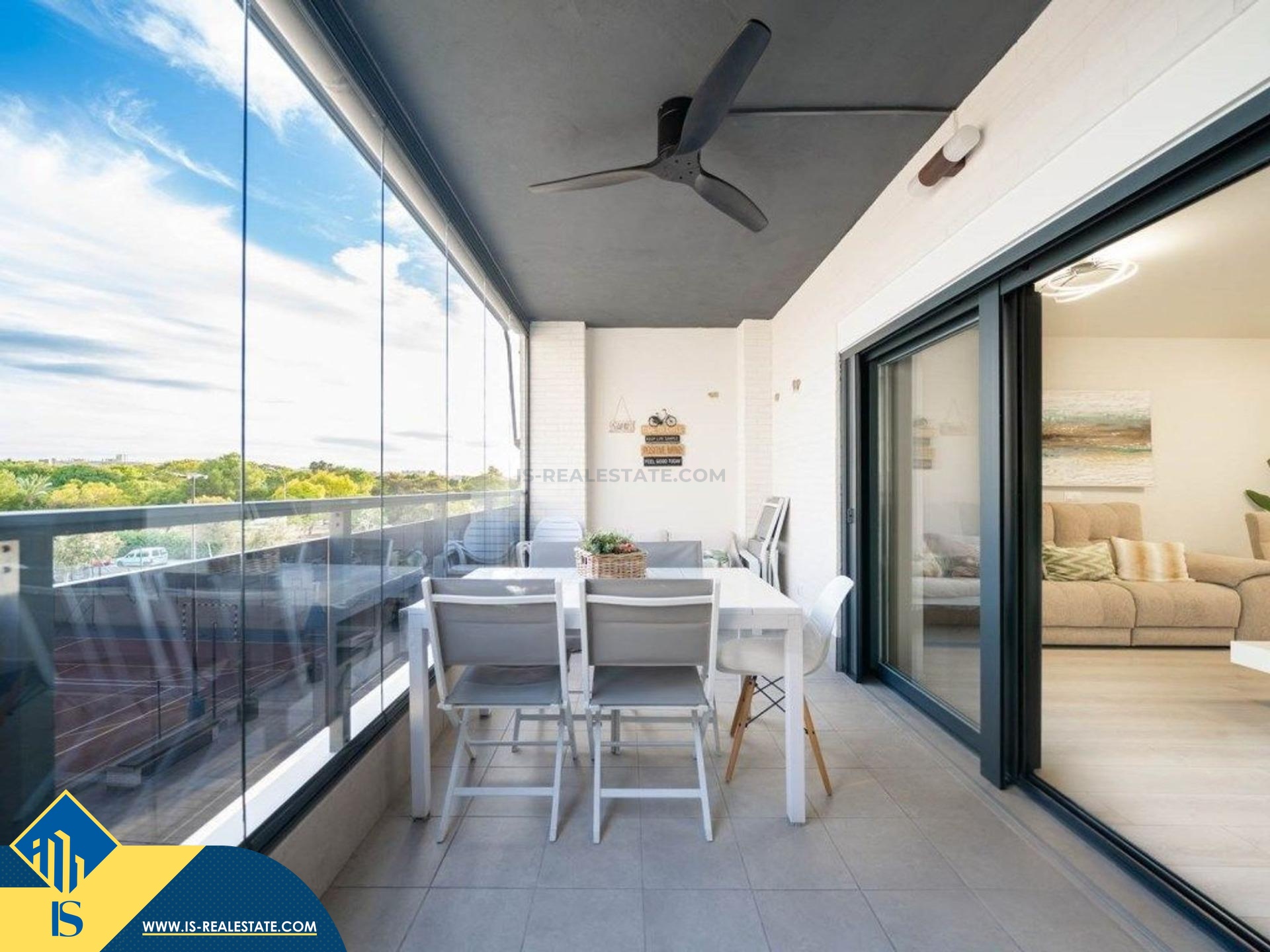 4-ių kambarių apartamentas su bendru baseinu, Ispanijoje, Alicante provincija, Alicante mieste, bendras plotas 97 m², 300 metrų iki jūros, 18 kilometrų iki Alicante miesto oro uosto. Netoli turto yra parduotuvės, restoranai, vaistinės, autobusų stotelės, degalinės, žalios zonos, kavinės