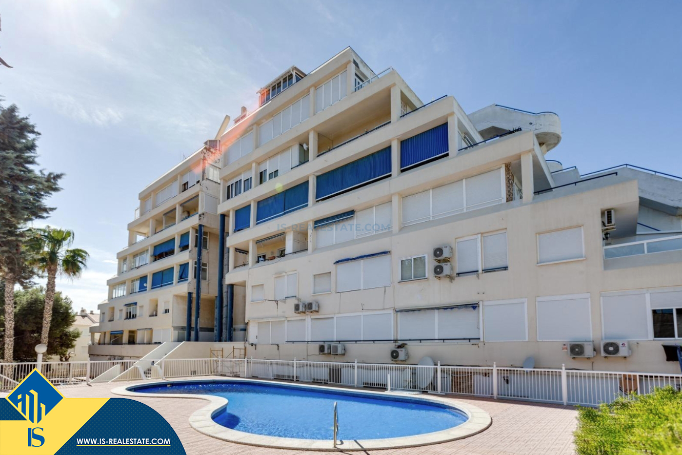 Studija su bendru baseinu, Ispanijoje, Alicante provincijoje, Torrevieja mieste, bendras plotas 27 m², 750 metrų iki jūros, 45 kilometrai iki Alicante oro uosto. Turtui priklauso bendras baseinas, terasa, liftas. Netoli turto yra parduotuvės, restoranai, vaistinės, autobusų stotelės, degalinės, žalios zonos, kavinės