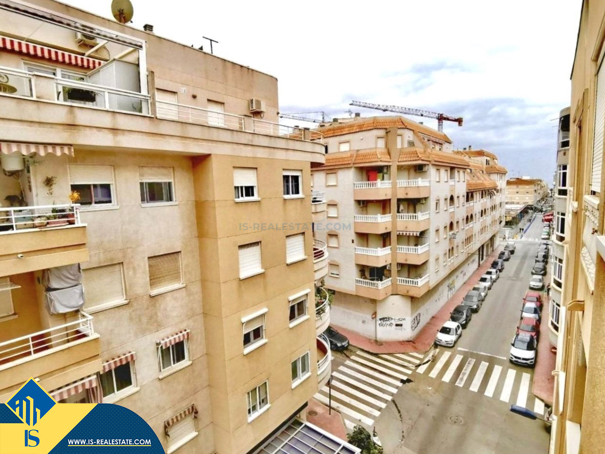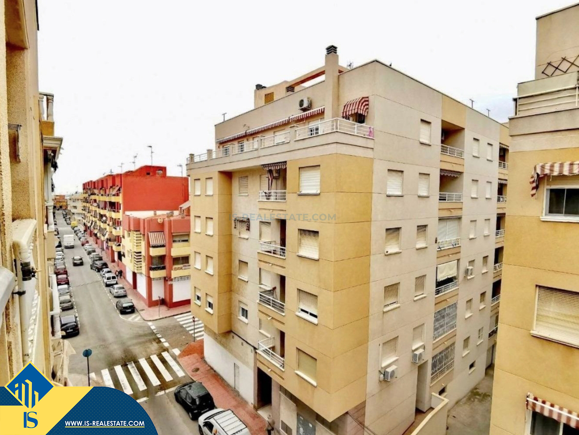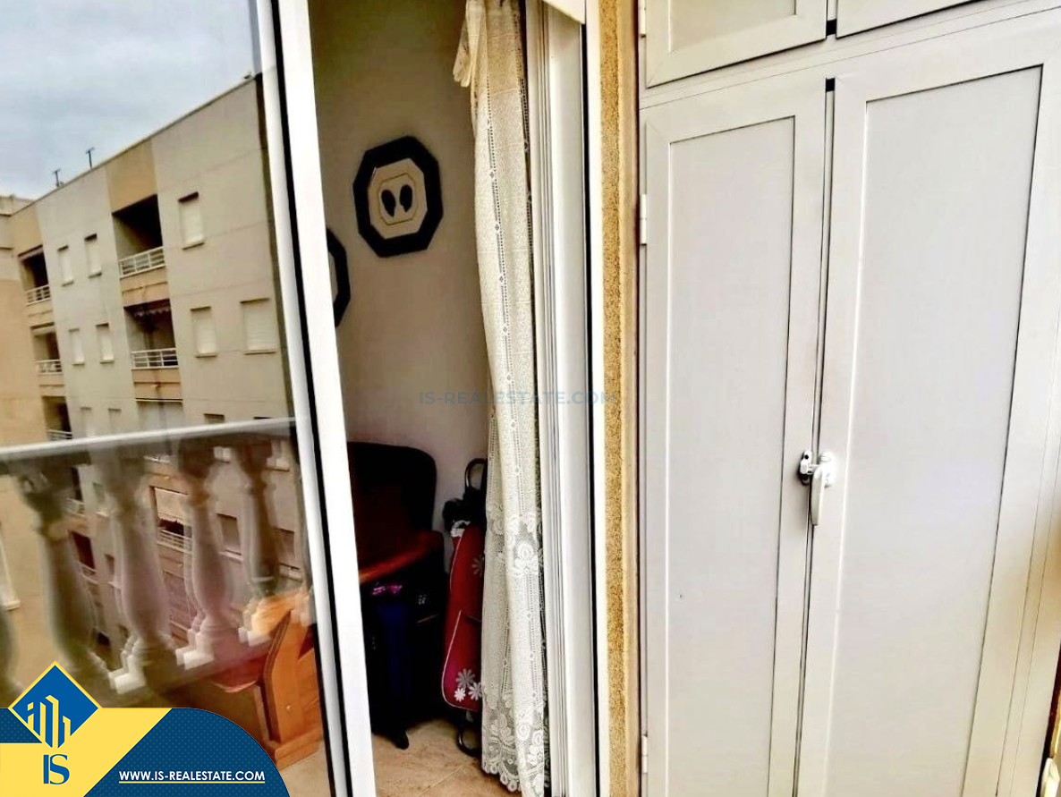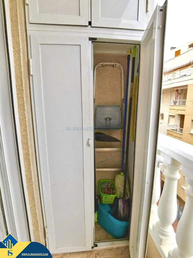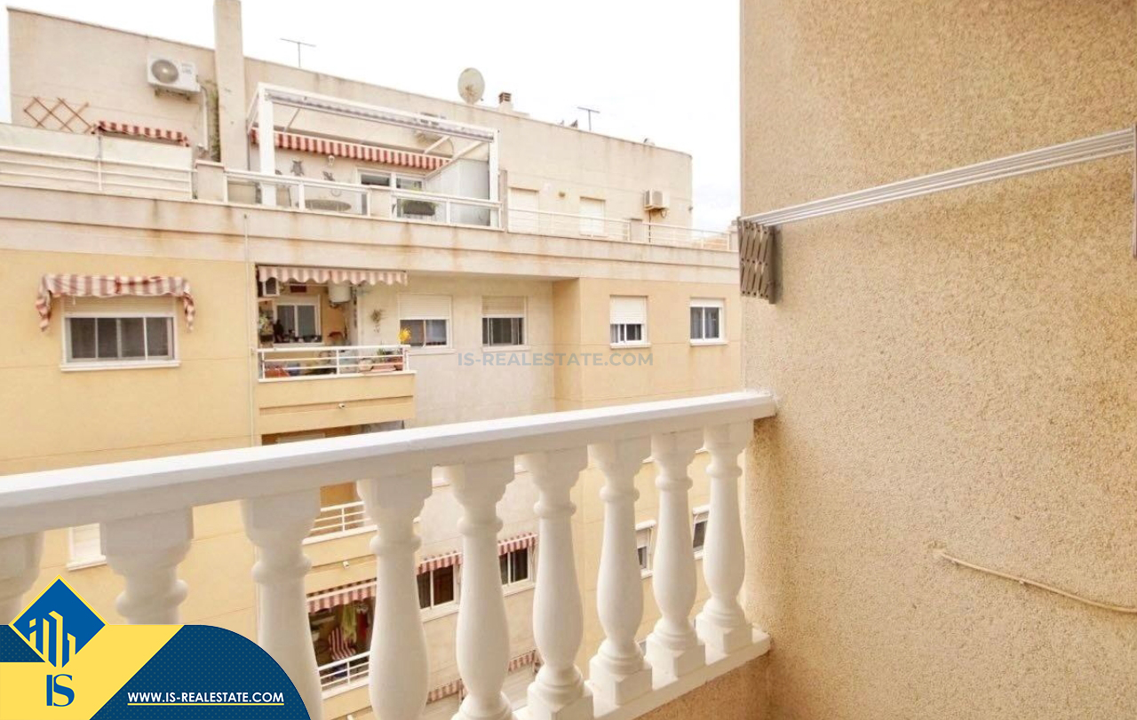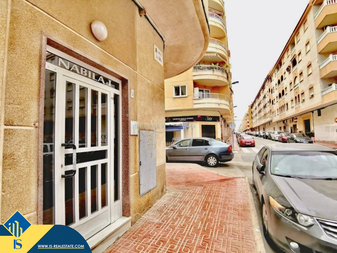 2-jų kambarių apartamentas su terasa, Ispanijoje, Alicante provincijoje, Torrevieja mieste, bendras plotas 55 m², 700 metrų iki jūros, 45 kilometrai iki Alicante oro uosto. Turtui priklauso terasa, liftas, sandėliukas. Netoli turto yra parduotuvės, restoranai, vaistinės, autobusų stotelės, degalinės, žalios zonos, kavinės