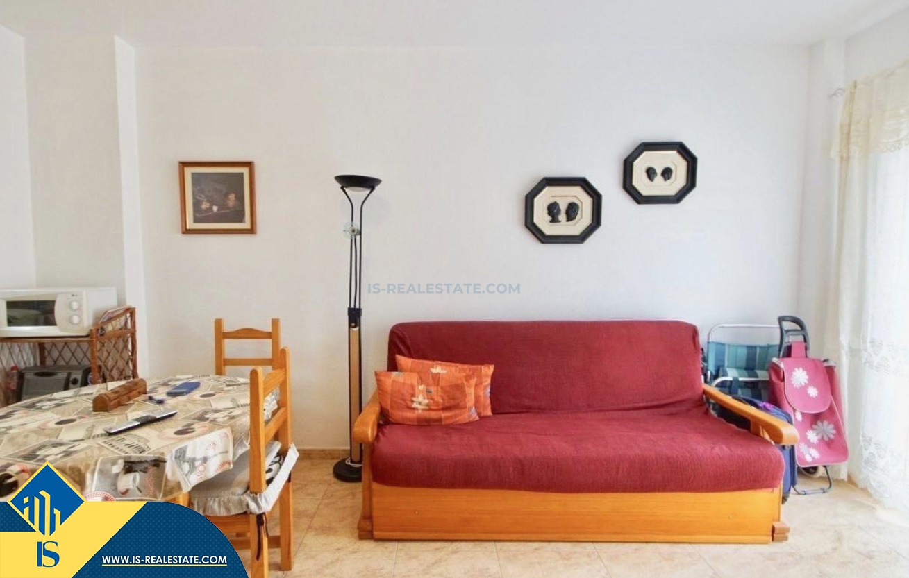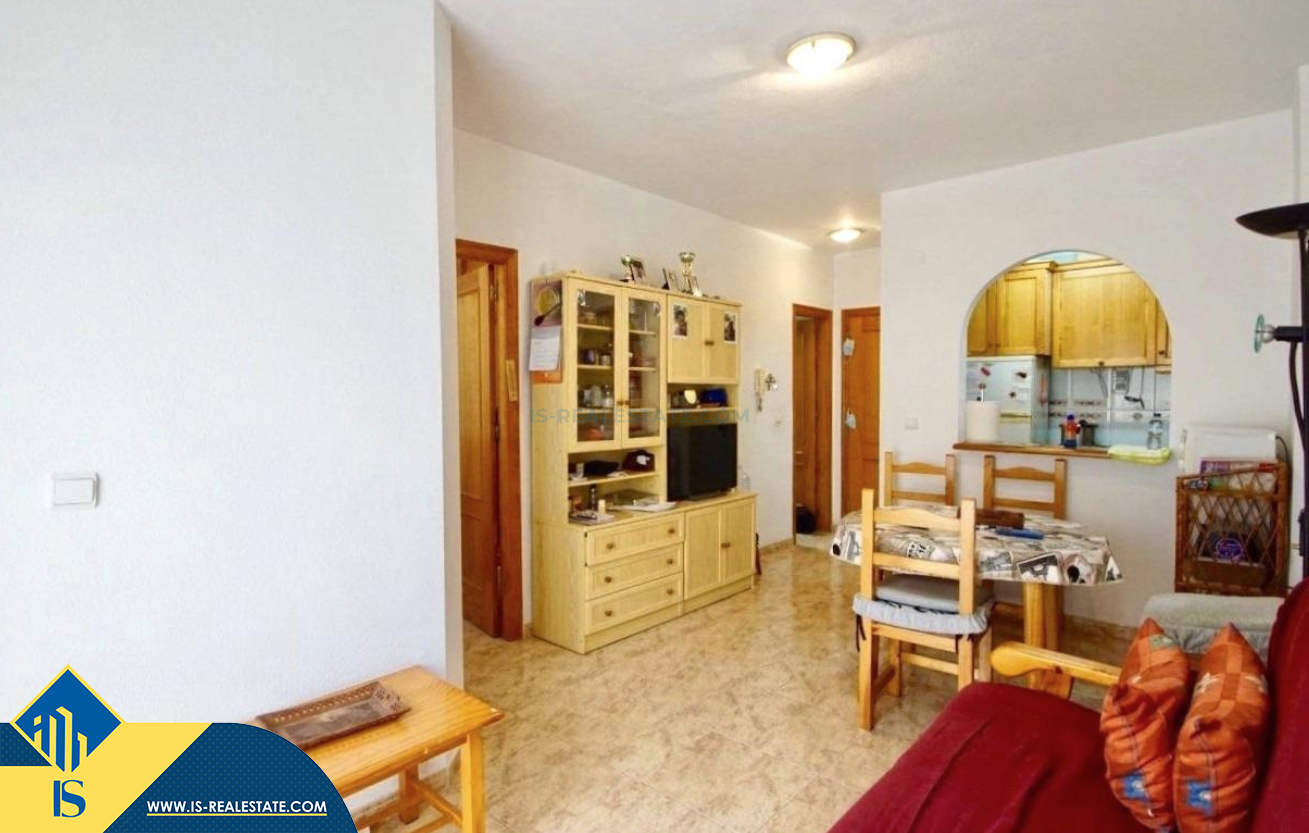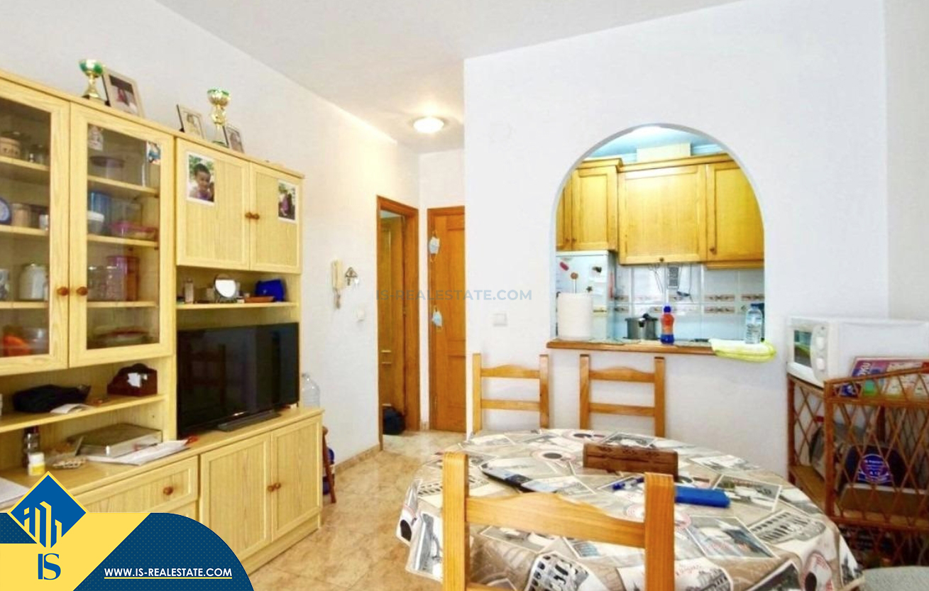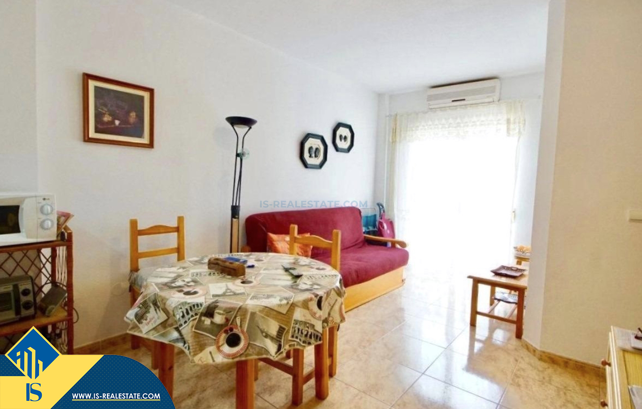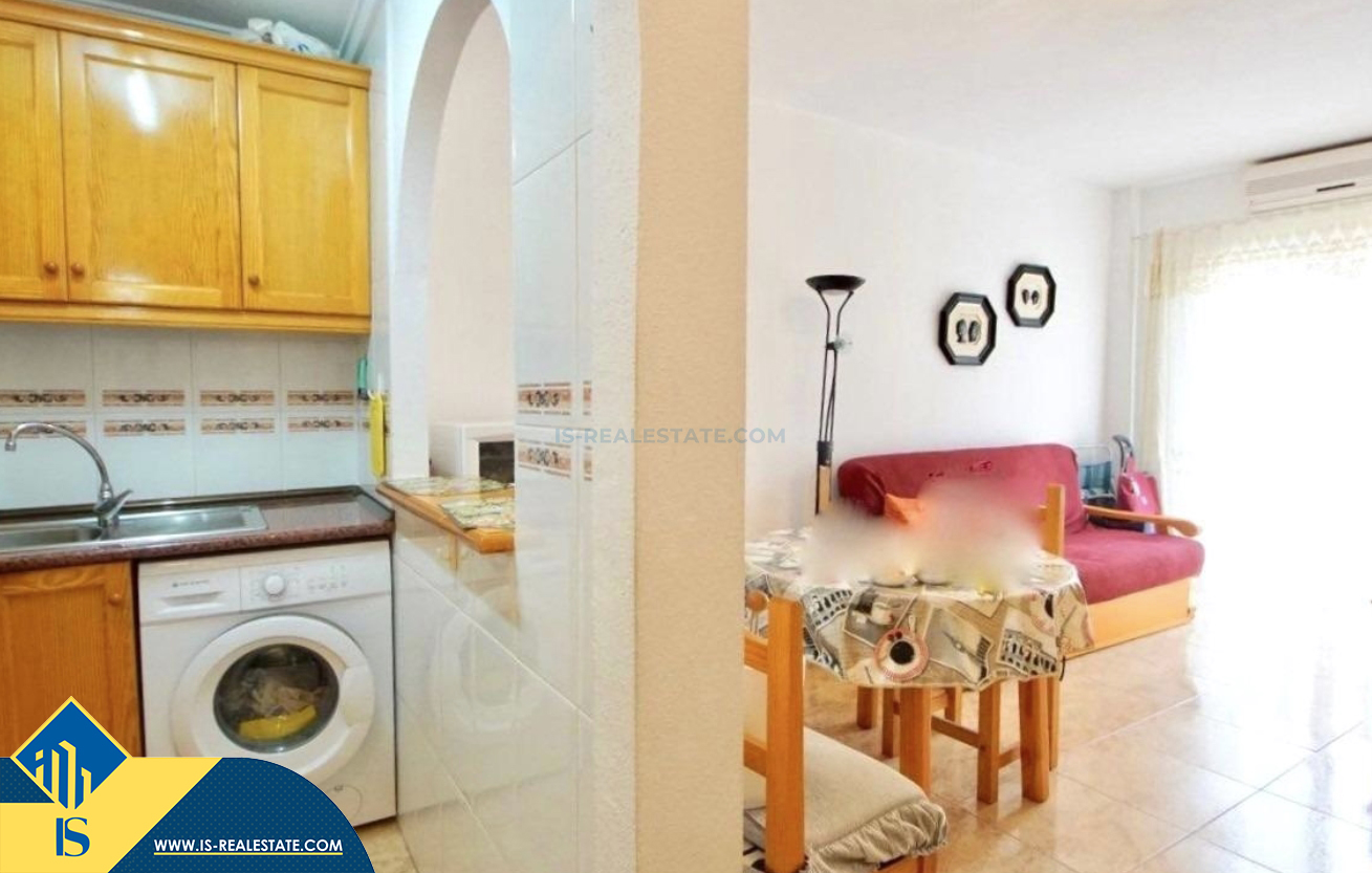 2-jų kambarių apartamentas su terasa, Ispanijoje, Alicante provincijoje, Torrevieja mieste, bendras plotas 55 m², 700 metrų iki jūros, 45 kilometrai iki Alicante oro uosto. Turtui priklauso terasa, liftas, sandėliukas. Netoli turto yra parduotuvės, restoranai, vaistinės, autobusų stotelės, degalinės, žalios zonos, kavinės
