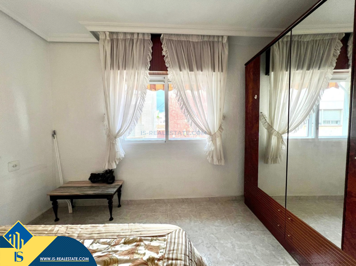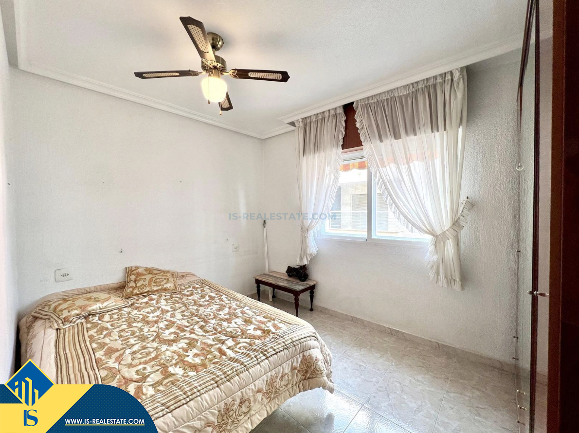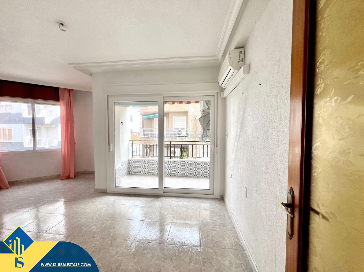 4-ių kambarių apartamentas su terasa, Ispanijoje, Alicante provincijoje, Torrevieja mieste, bendras plotas 91 m², 100 metrų iki jūros, 45 kilometrai iki Alicante oro uosto. Turtui priklauso terasa, balkonas, liftas. Netoli turto yra parduotuvės, restoranai, vaistinės, autobusų stotelės, degalinės, žalios zonos, kavinės