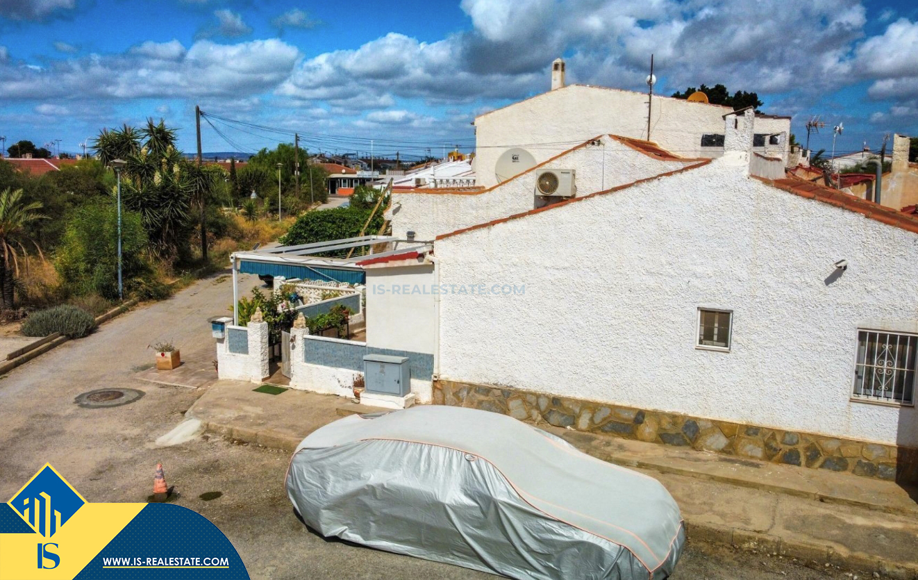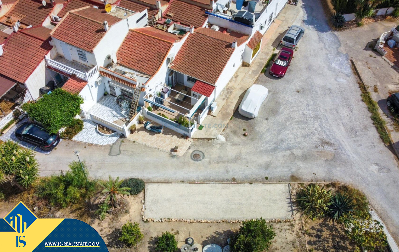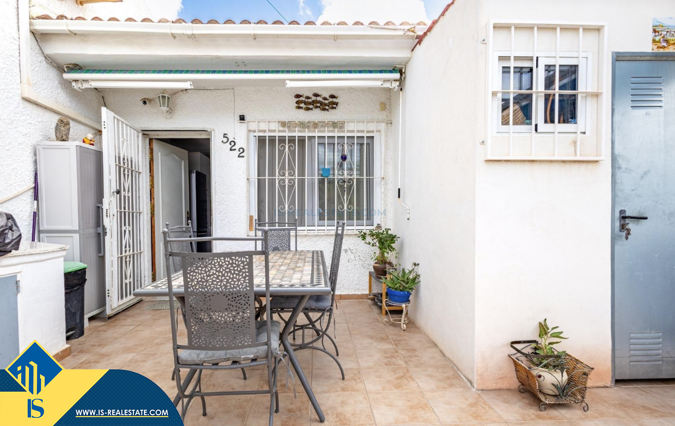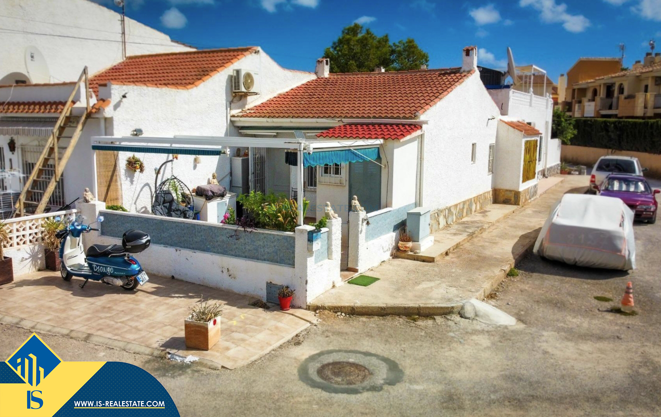3-jų kambarių bungalas su terasa, Ispanijoje, Alicante provincijoje, Torrevieja mieste, Torreta rajone, bendras plotas 53 m², 3.5 kilometro iki jūros, 45 kilometrai iki Alicante oro uosto. Turtui priklauso terasa, kiemelis. Netoli turto yra parduotuvės, restoranai, autobusų stotelės, vaikų zonos, degalinės, žalios zonos, kavinės, prekybos centras