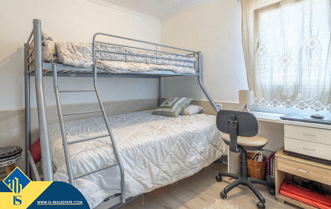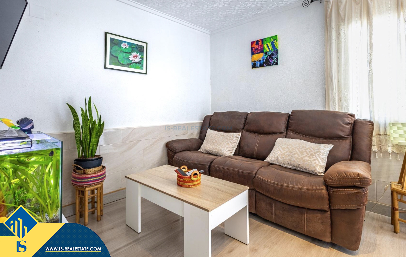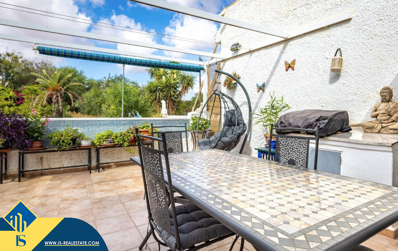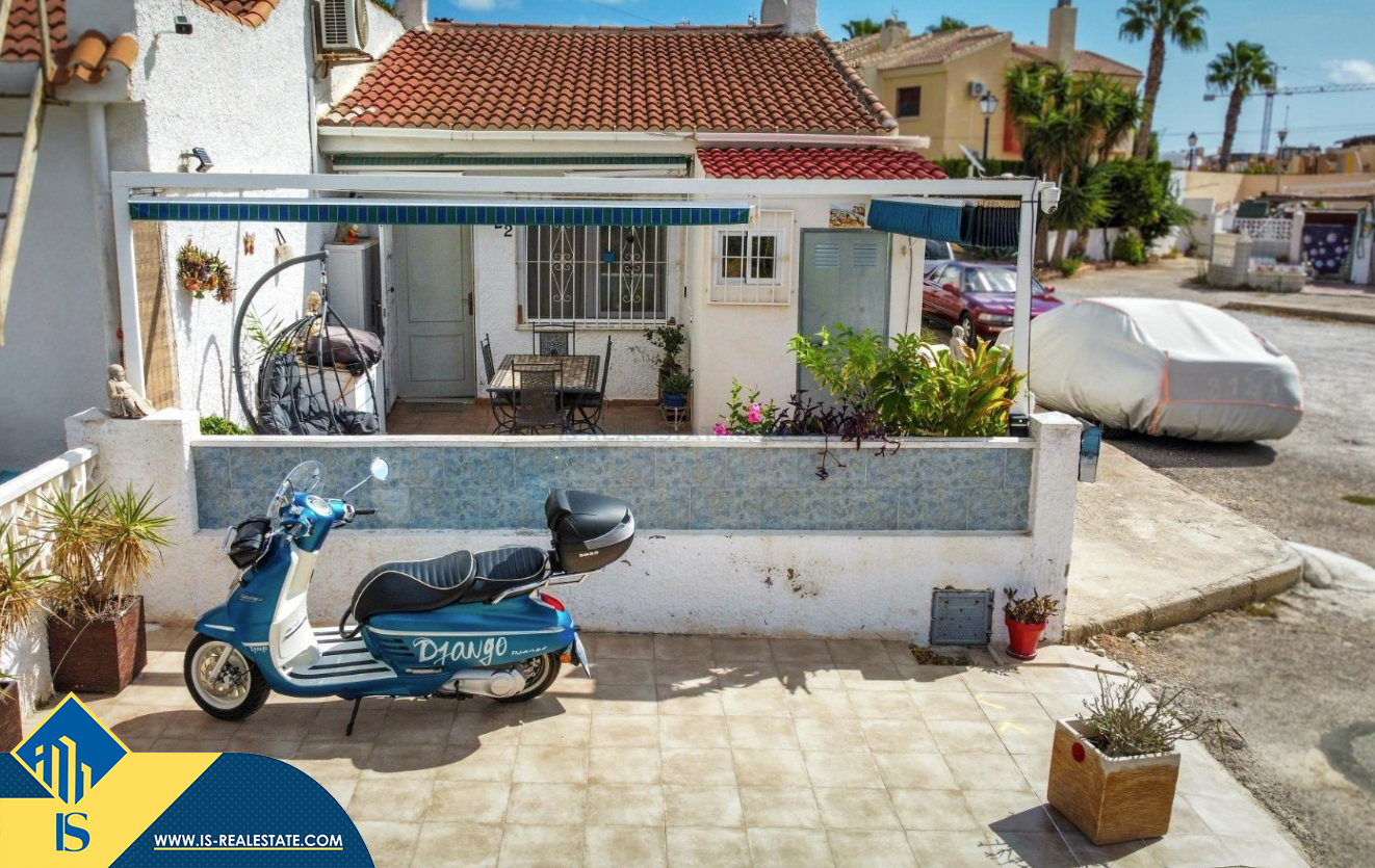 3-jų kambarių bungalas su terasa, Ispanijoje, Alicante provincijoje, Torrevieja mieste, Torreta rajone, bendras plotas 53 m², 3.5 kilometro iki jūros, 45 kilometrai iki Alicante oro uosto. Turtui priklauso terasa, kiemelis. Netoli turto yra parduotuvės, restoranai, autobusų stotelės, vaikų zonos, degalinės, žalios zonos, kavinės, prekybos centras