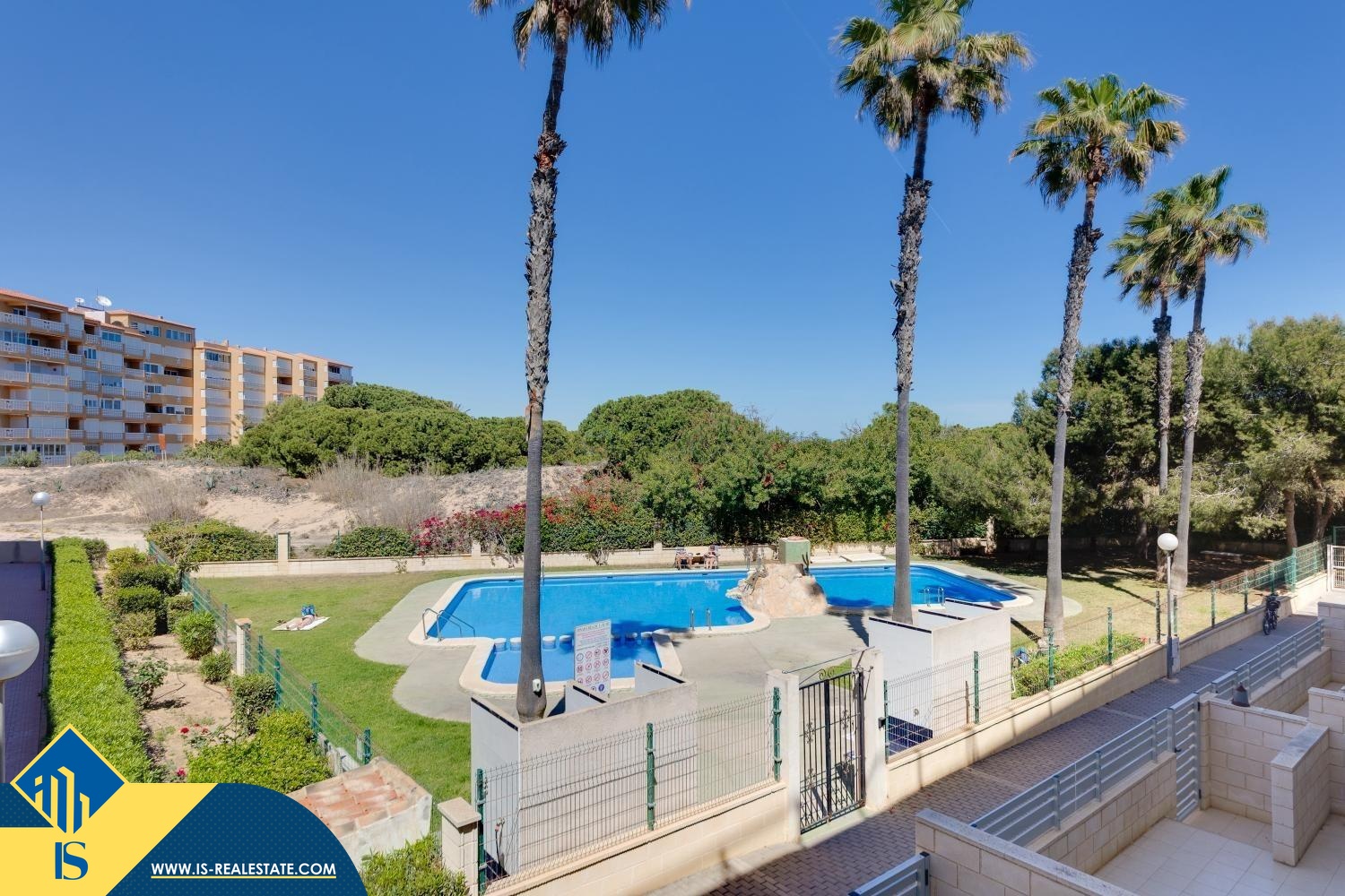 3-jų kambarių apartamentas su bendru baseinu, Ispanijoje, Alicante provincijoje, Torrevieja mieste, La Mata rajone, bendras plotas 85 m², 300 metrų iki jūros, 38 kilometrai iki Alicante oro uosto. Turtui priklauso bendras baseinas, terasa, liftas. Netoli turto yra parduotuvės, restoranai, autobusų stotelės, degalinės, žalios zonos, kavinės, vaistinės