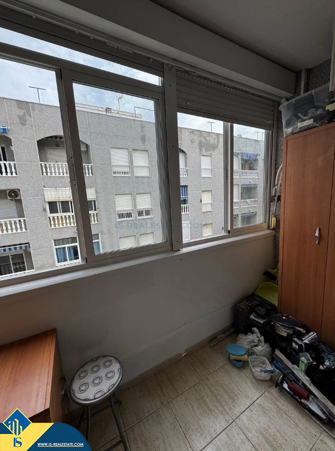 Studija su bendru baseinu, Ispanijoje, Alicante provincijoje, Torrevieja mieste, Playa de los Locos rajone, bendras plotas 35 m², 300 metrų iki jūros, 45 kilometrai iki Alicante oro uosto. Turtui priklauso bendras baseinas, terasa, liftas. Netoli turto yra parduotuvės, restoranai, vaistinės, autobusų stotelės, degalinės, žalios zonos, kavinės, Habaneras alėja
