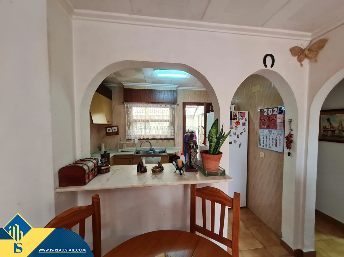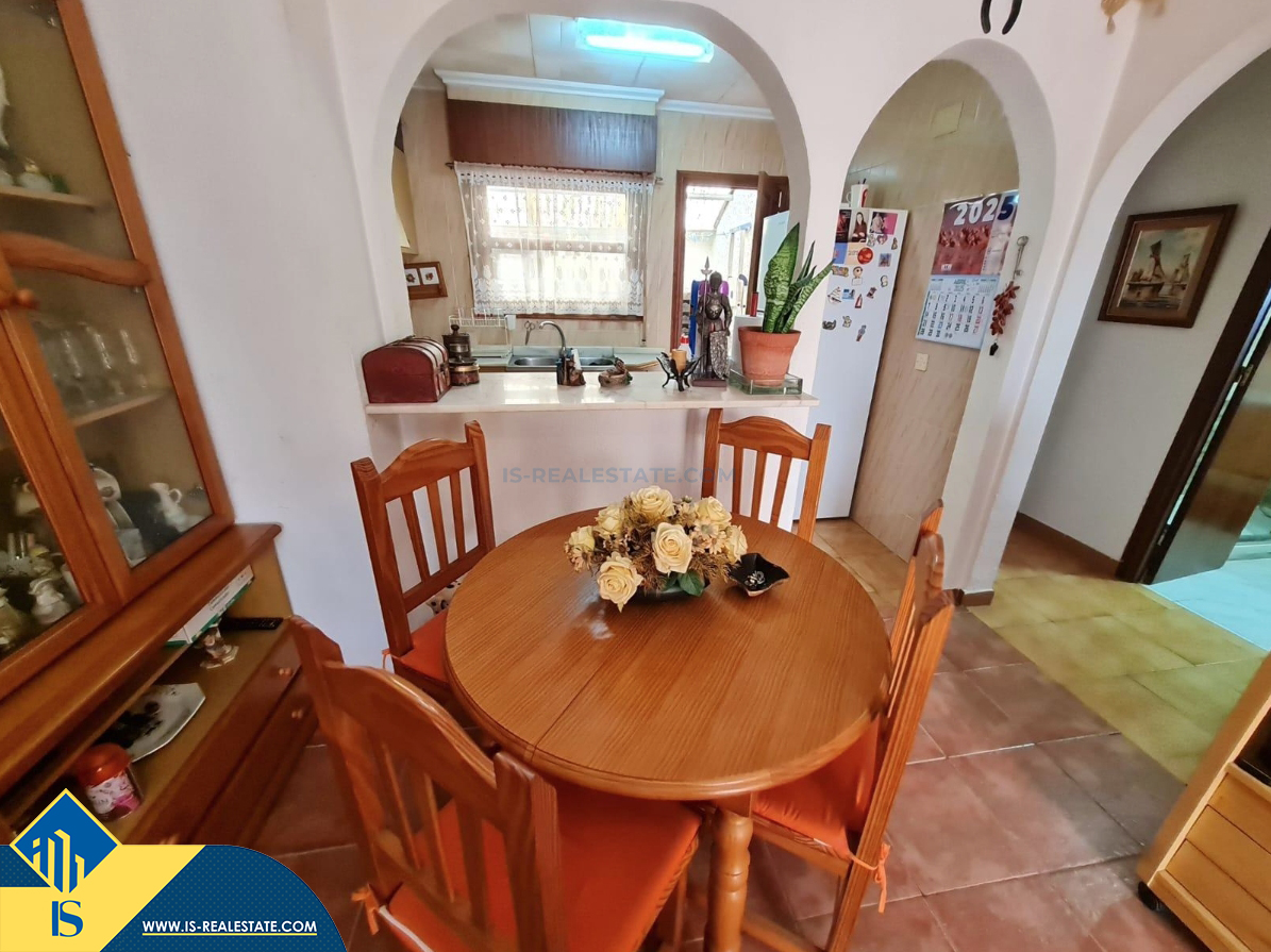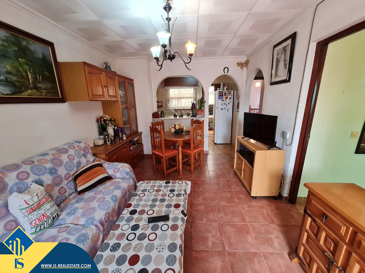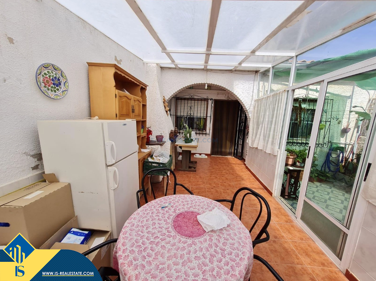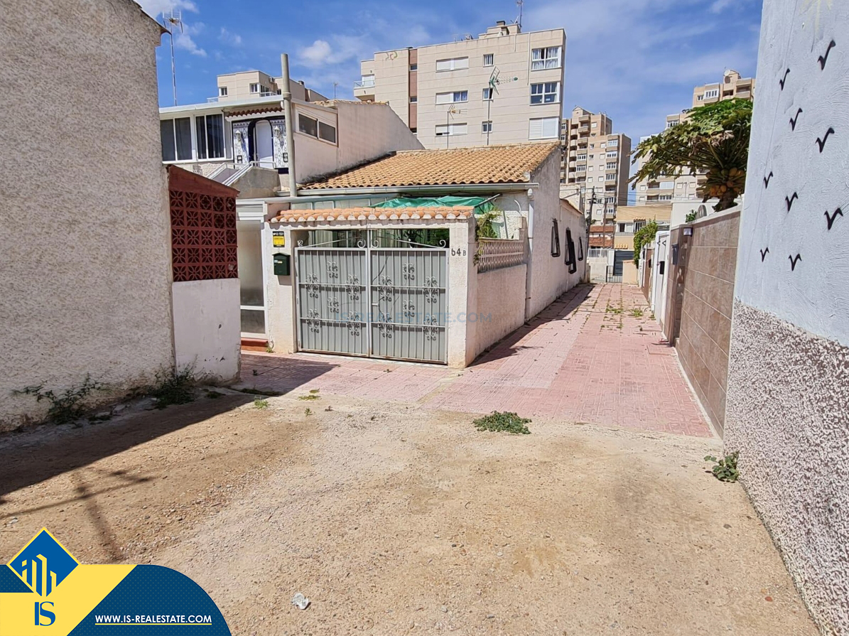 3-jų kambarių bungalas su terasa, Ispanijoje, Alicante provincijoje, Torrevieja mieste, bendras plotas 36 m², 1.5 kilometro iki jūros, 45 kilometrai iki Alicante oro uosto. Turtui priklauso terasa. Netoli turto yra parduotuvės, restoranai, autobusų stotelės, vaikų zonos, degalinės, žalios zonos, kavinės