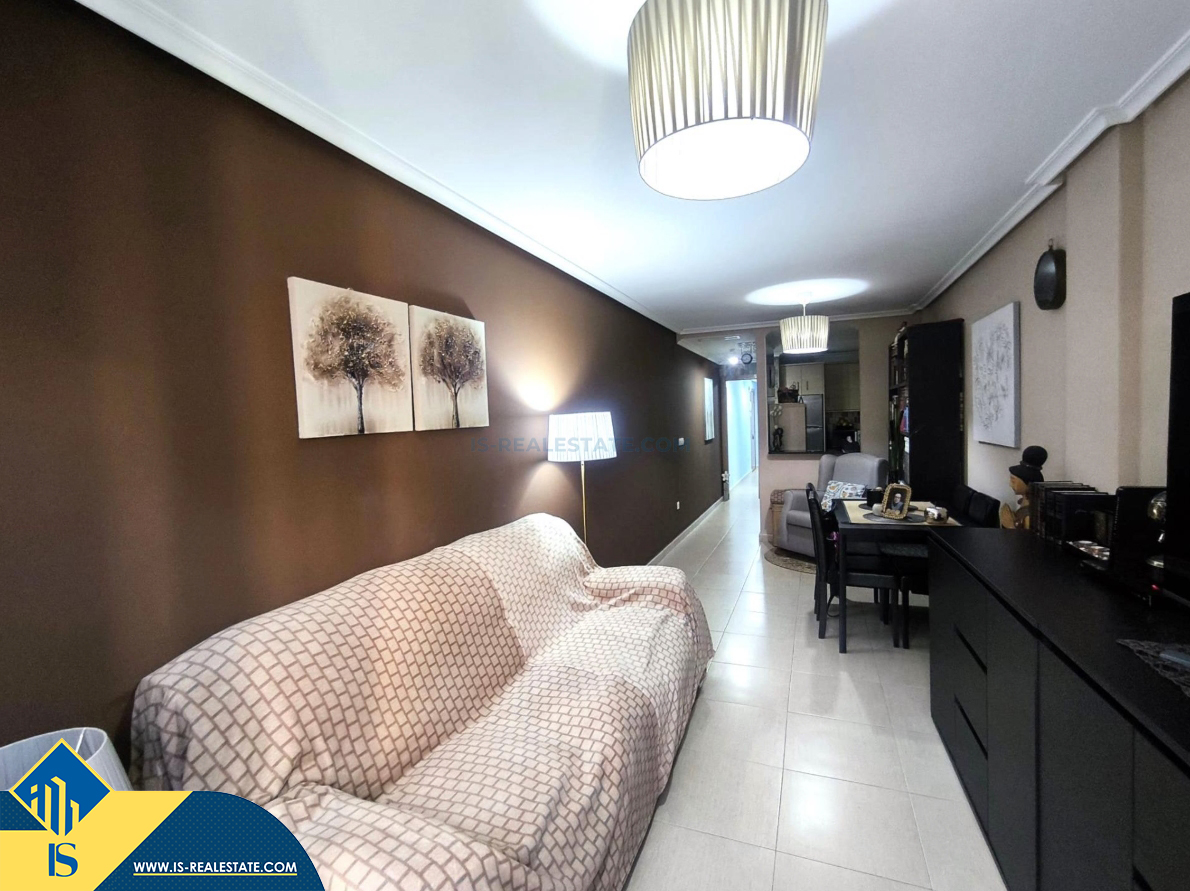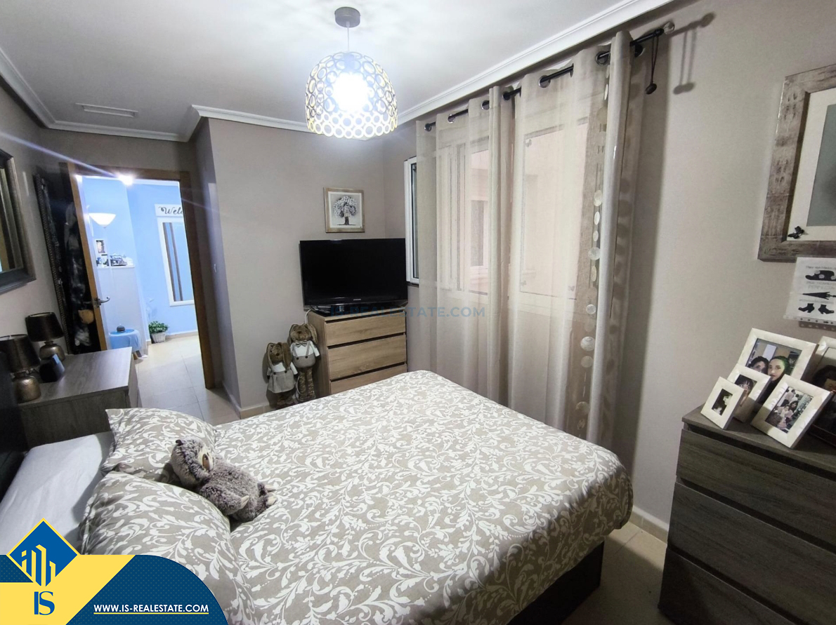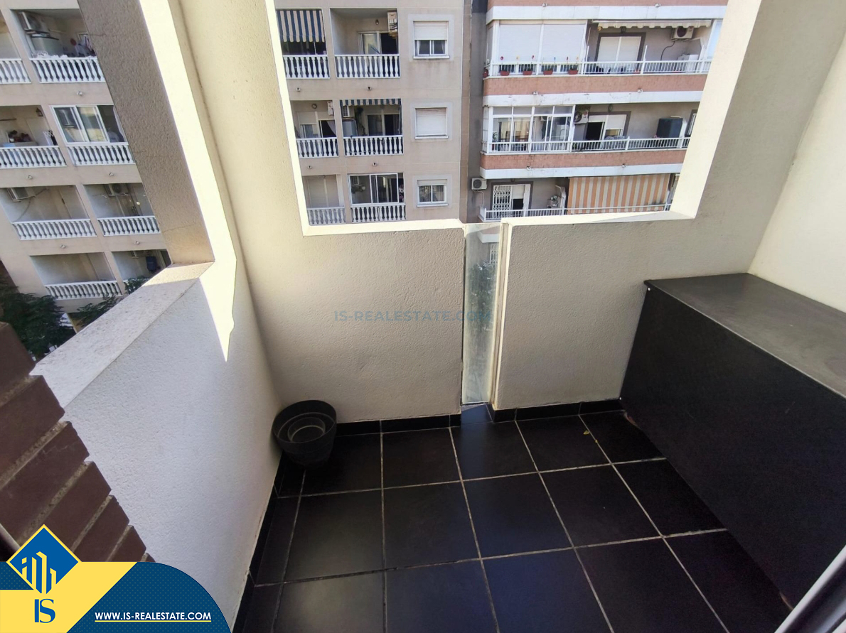 3-jų kambarių apartamentas su terasa, Ispanijoje, Alicante provincijoje, Torrevieja mieste, bendras plotas 82 m², 1 kilometras iki jūros, 45 kilometrai iki Alicante oro uosto. Turtui priklauso terasa, liftas. Netoli turto yra parduotuvės, restoranai, vaistinės, autobusų stotelės, degalinės, žalios zonos, kavinės
