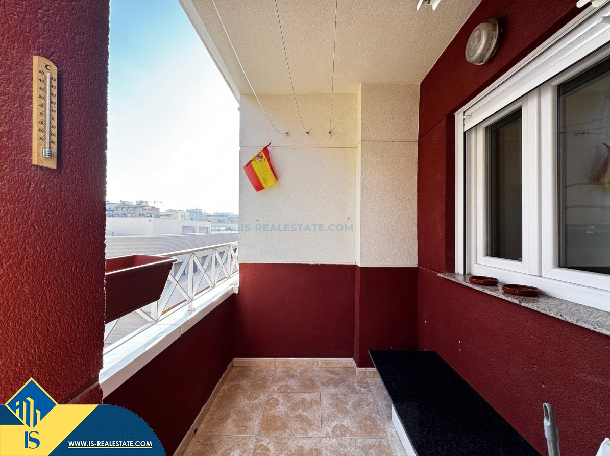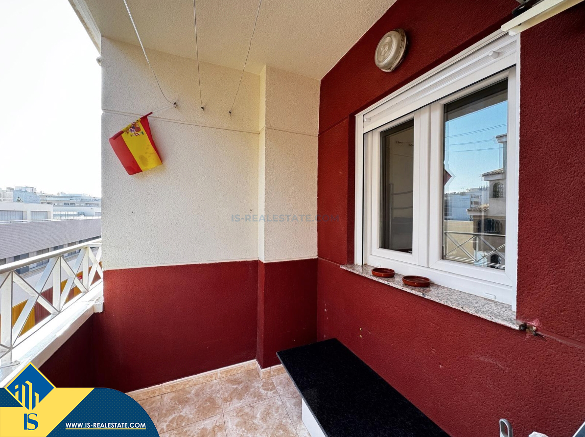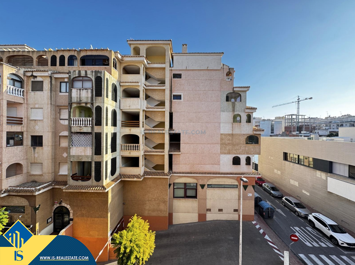 3-jų kambarių apartamentas su bendru baseinu, Ispanijoje, Alicante provincijoje, Torrevieja mieste, bendras plotas 70 m², 800 metrų iki jūros, 45 kilometrai iki Alicante oro uosto. Turtui priklauso bendras baseinas, terasa, liftas. Netoli turto yra parduotuvės, restoranai, vaistinės, autobusų stotelės, degalinės, žalios zonos, kavinės