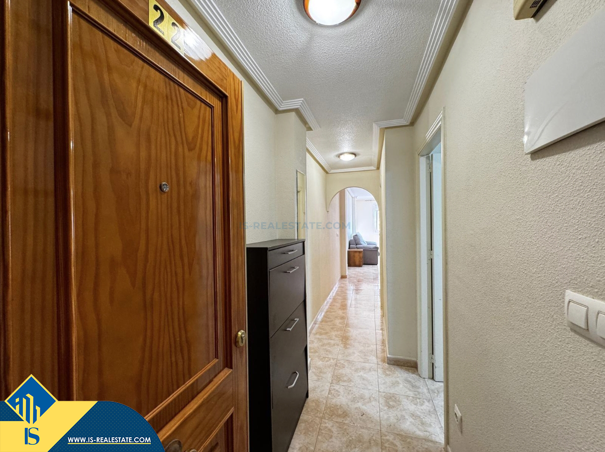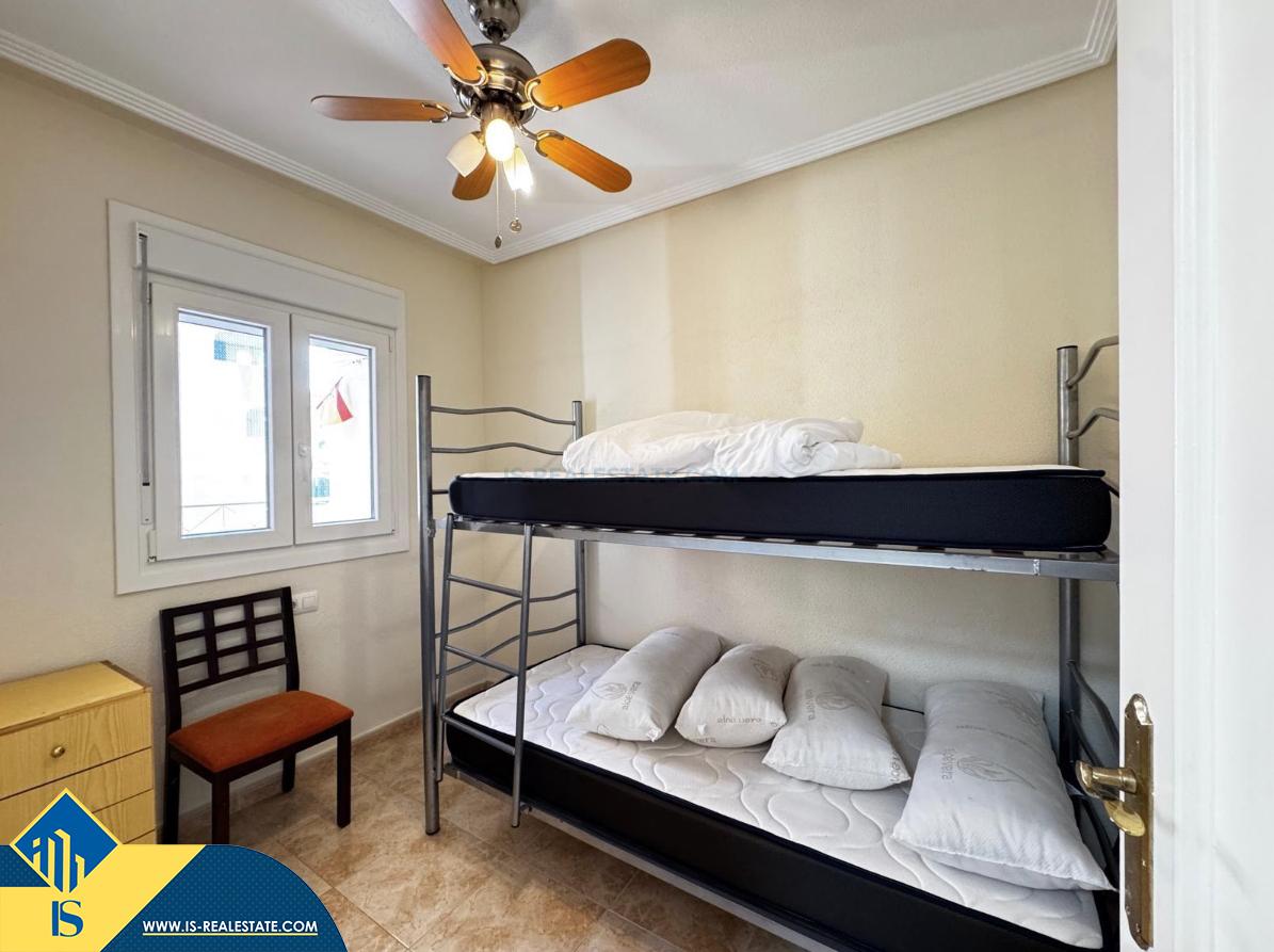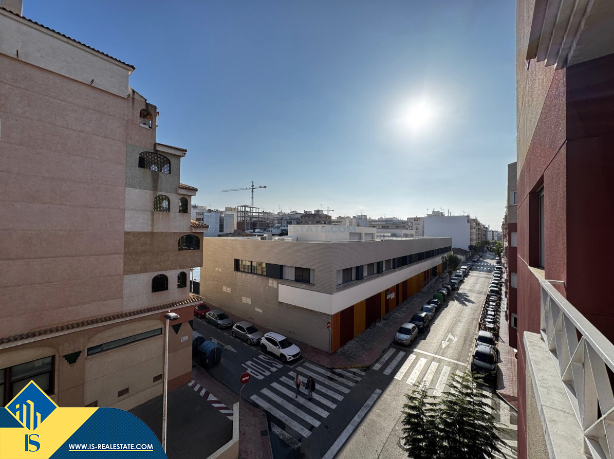 3-jų kambarių apartamentas su bendru baseinu, Ispanijoje, Alicante provincijoje, Torrevieja mieste, bendras plotas 70 m², 800 metrų iki jūros, 45 kilometrai iki Alicante oro uosto. Turtui priklauso bendras baseinas, terasa, liftas. Netoli turto yra parduotuvės, restoranai, vaistinės, autobusų stotelės, degalinės, žalios zonos, kavinės