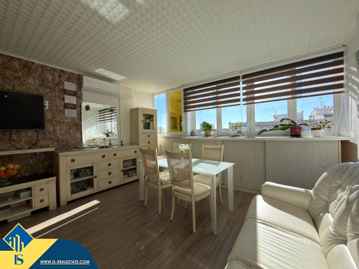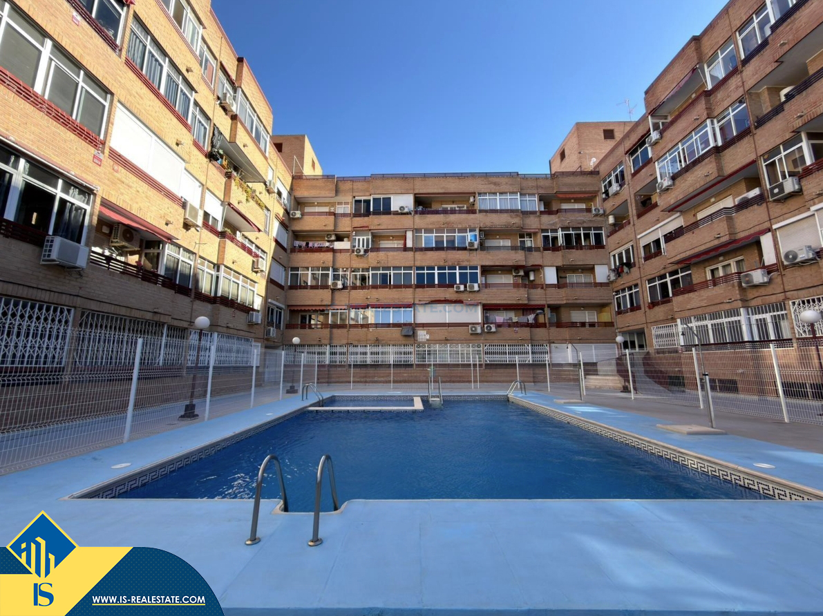 2-jų kambarių renovuotas apartamentas su bendru baseinu, Ispanijoje, Alicante provincijoje, Torrevieja mieste, bendras plotas 57 m², 1.5 kilometro iki jūros, 45 kilometrai iki Alicante oro uosto. Turtui priklauso bendras baseinas. Netoli turto yra parduotuvės, restoranai, vaistinės, autobusų stotelės, degalinės, žalios zonos, kavinės