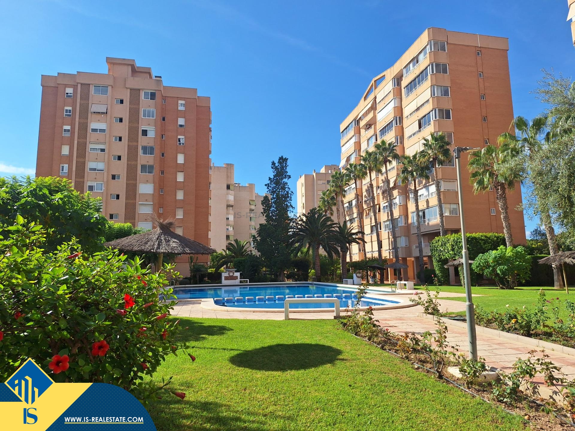 3-jų kambarių apartamentas su bendru baseinu, Ispanijoje, Alicante provincijoje, Alicante mieste, bendras plotas 107 m², 600 metrų iki jūros, 7 kilometrai iki Alicante oro uosto. Turtui priklauso bendras baseinas, terasa, liftas, garažas. Netoli turto yra parduotuvės, restoranai, vaistinės, autobusų stotelės, degalinės, žalios zonos, kavinės