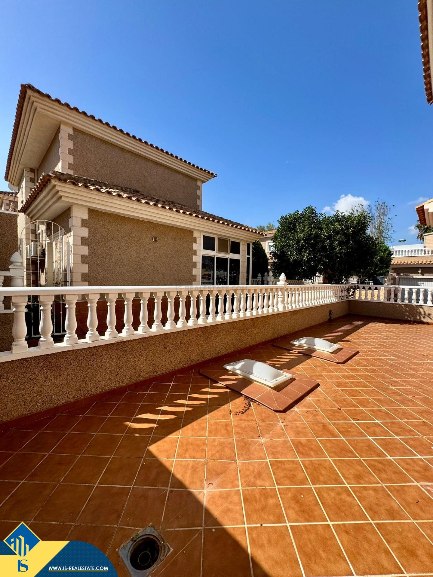 6-ių kambarių namas su bendru baseinu, Ispanijoje, Alicante provincijoje, Torrevieja mieste, Los Balcones rajone, bendras plotas 116 m², 1.5 kilometrai iki jūros, 45 kilometrai iki Alicante oro uosto. Turtui priklauso bendras baseinas, terasa. Netoli turto yra parduotuvės, restoranai, autobusų stotelės, vaikų zonos, degalinės, žalios zonos, kavinės