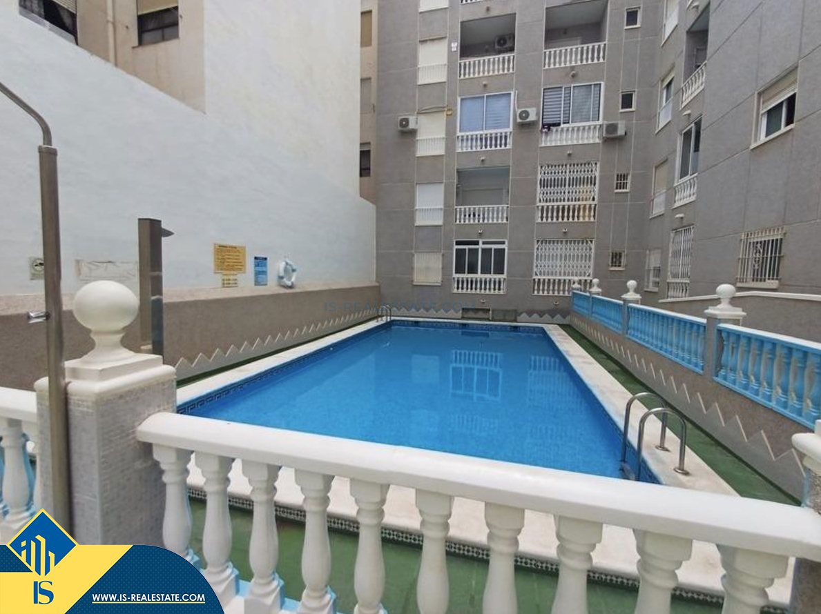 2-jų kambarių renovuotas apartamentas su bendru baseinu, Ispanijoje, Alicante provincijoje, Torrevieja mieste, Playa del Acequión rajone, bendras plotas 49 m², 200 metrų iki jūros, 45 kilometrai iki Alicante oro uosto. Turtui priklauso bendras baseinas, terasa, liftas. Netoli turto yra parduotuvės, restoranai, vaistinės, autobusų stotelės, degalinės, žalios zonos, kavinės