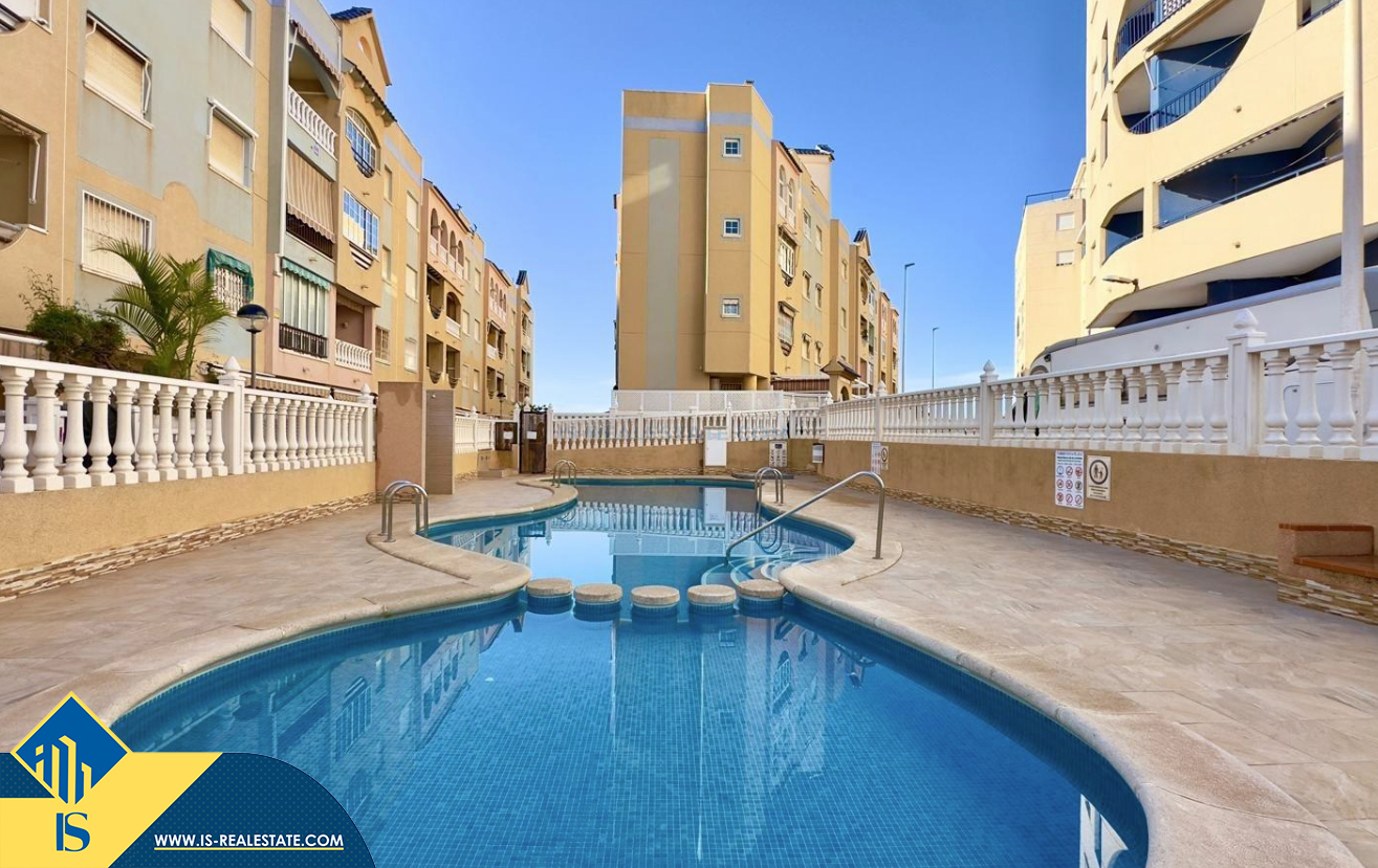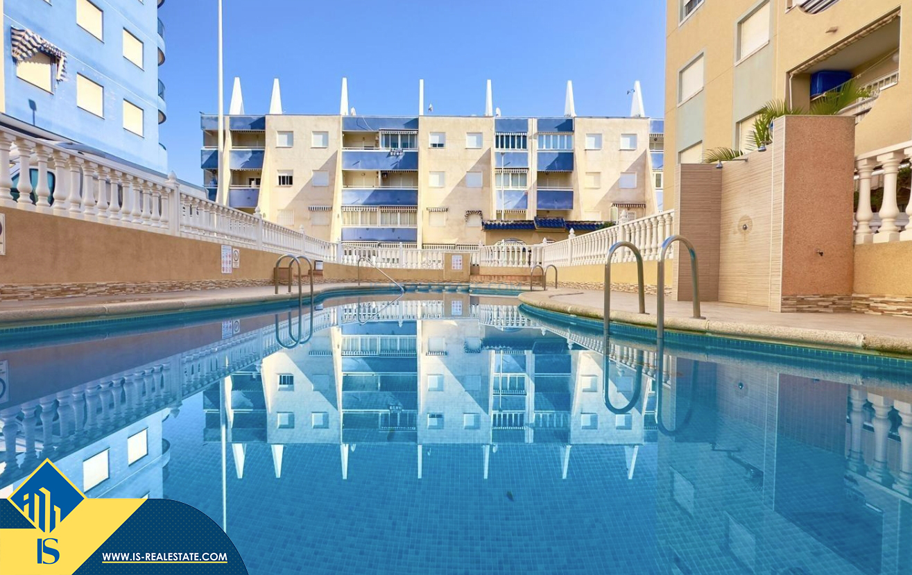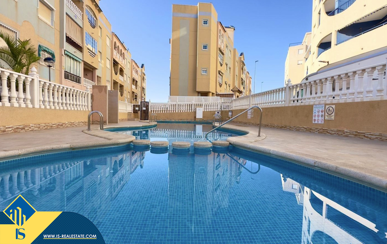 3-jų kambarių apartamentas su bendru baseinu, Ispanijoje, Alicante provincijoje, Torrevieja mieste, La Mata rajone, bendras plotas 52 m², 130 metrų iki jūros, 38 kilometrai iki Alicante oro uosto. Turtui priklauso bendras baseinas, terasa. Netoli turto yra parduotuvės, restoranai, autobusų stotelės, degalinės, žalios zonos, kavinės, vaistinės