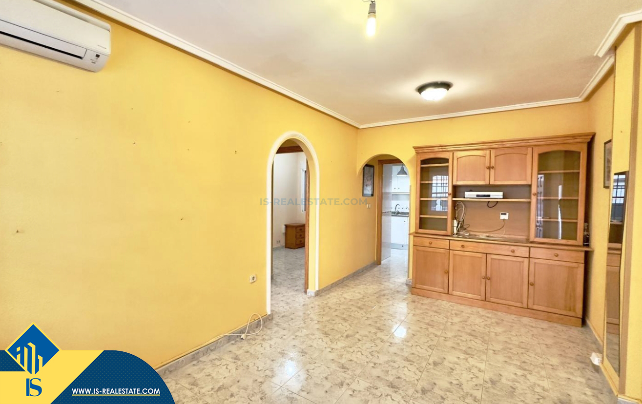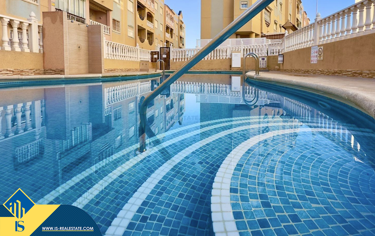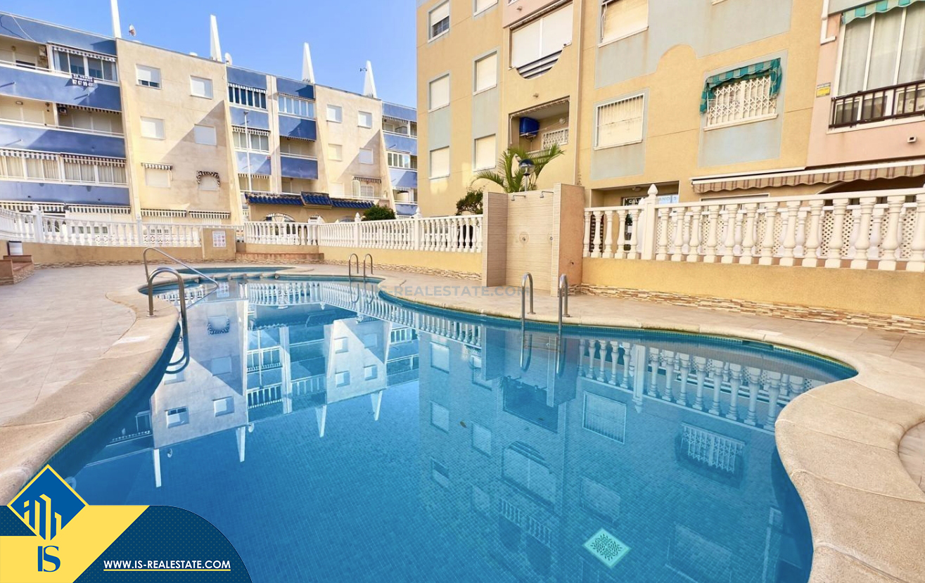 3-jų kambarių apartamentas su bendru baseinu, Ispanijoje, Alicante provincijoje, Torrevieja mieste, La Mata rajone, bendras plotas 52 m², 130 metrų iki jūros, 38 kilometrai iki Alicante oro uosto. Turtui priklauso bendras baseinas, terasa. Netoli turto yra parduotuvės, restoranai, autobusų stotelės, degalinės, žalios zonos, kavinės, vaistinės