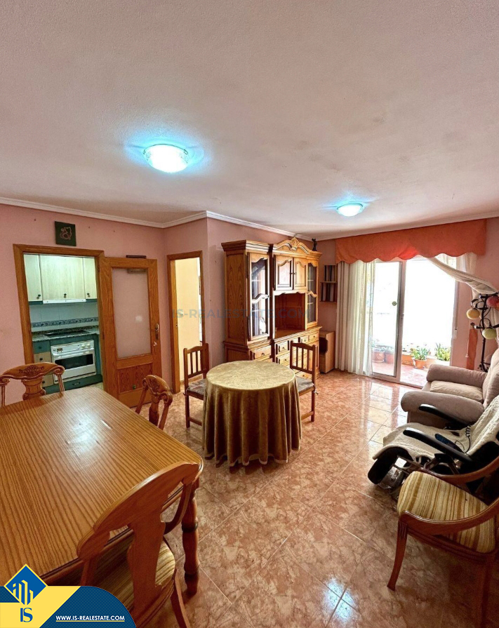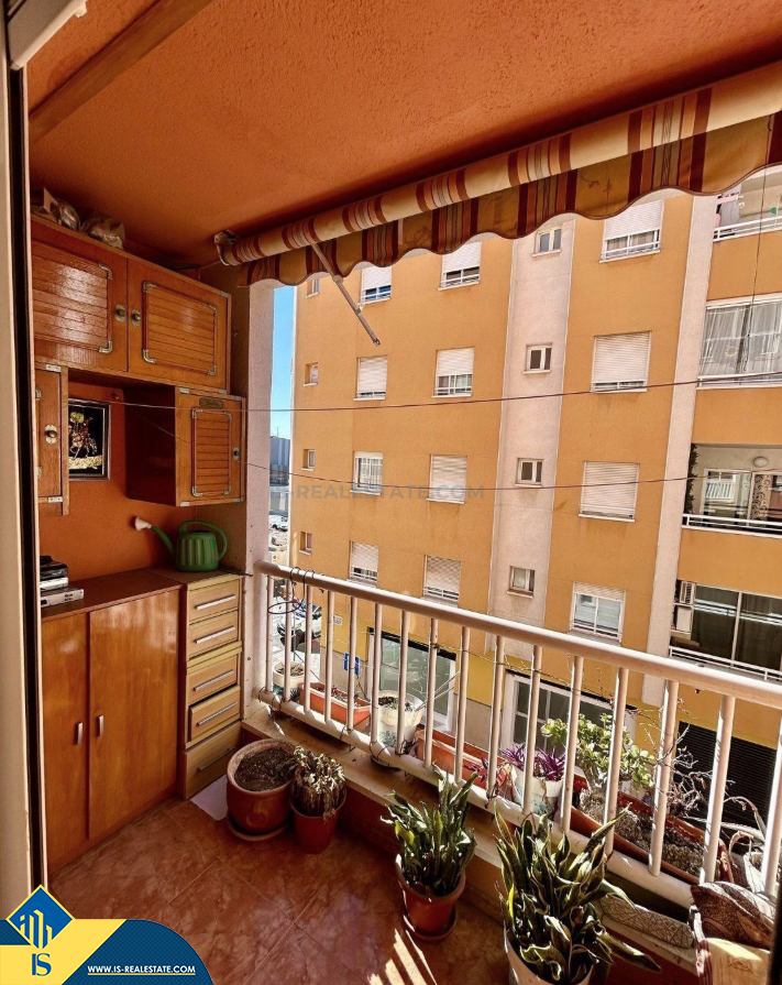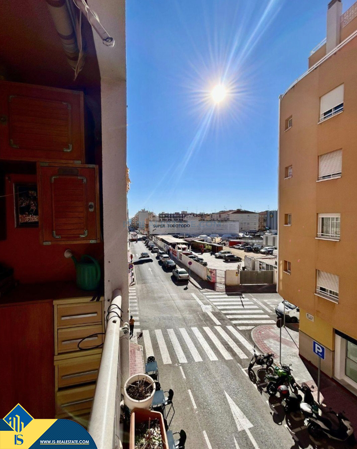 3-jų kambarių apartamentas su terasa, Ispanijoje, Alicante provincijoje, Torrevieja mieste, bendras plotas 68 m², 650 metrų iki jūros, 45 kilometrai iki Alicante oro uosto. Turtui priklauso terasa, liftas, garažas, sandėliukas. Netoli turto yra parduotuvės, restoranai, vaistinės, autobusų stotelės, degalinės, žalios zonos, kavinės