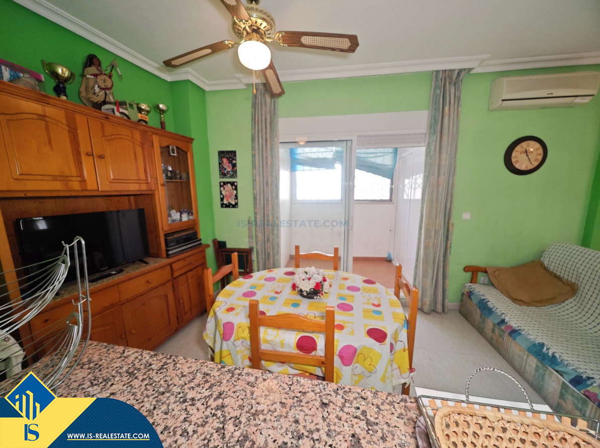 Studija su terasa, Ispanijoje, Alicante provincijoje, Torrevieja mieste, bendras plotas 42 m², 1 kilometras iki jūros, 45 kilometrai iki Alicante oro uosto. Turtui priklauso terasa, liftas. Netoli turto yra parduotuvės, restoranai, vaistinės, autobusų stotelės, degalinės, žalios zonos, kavinės