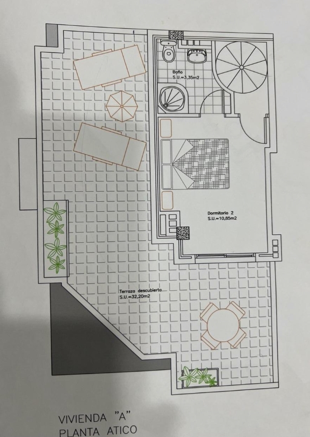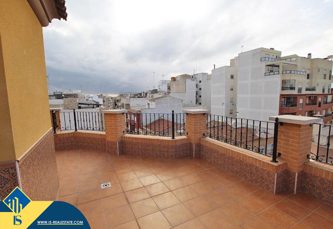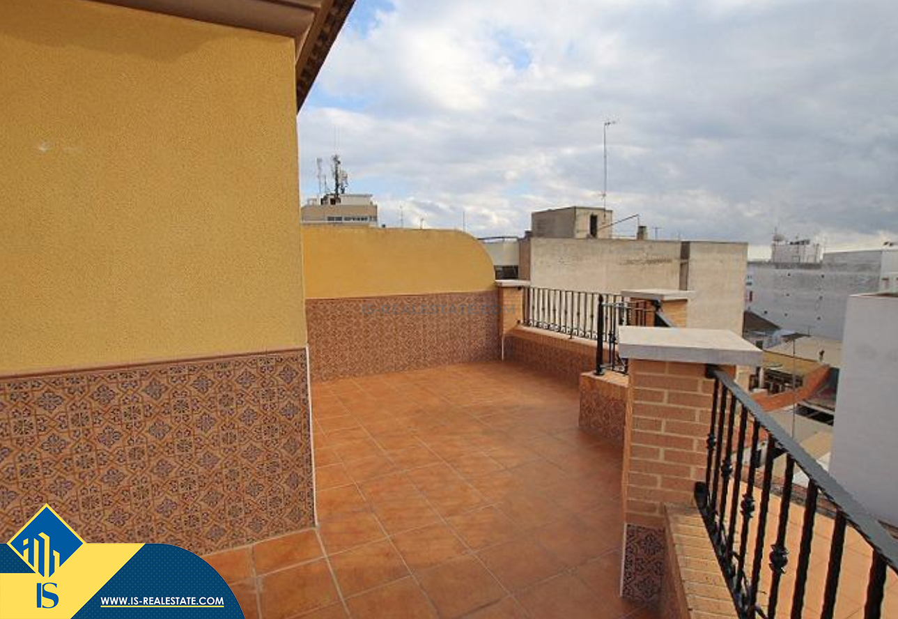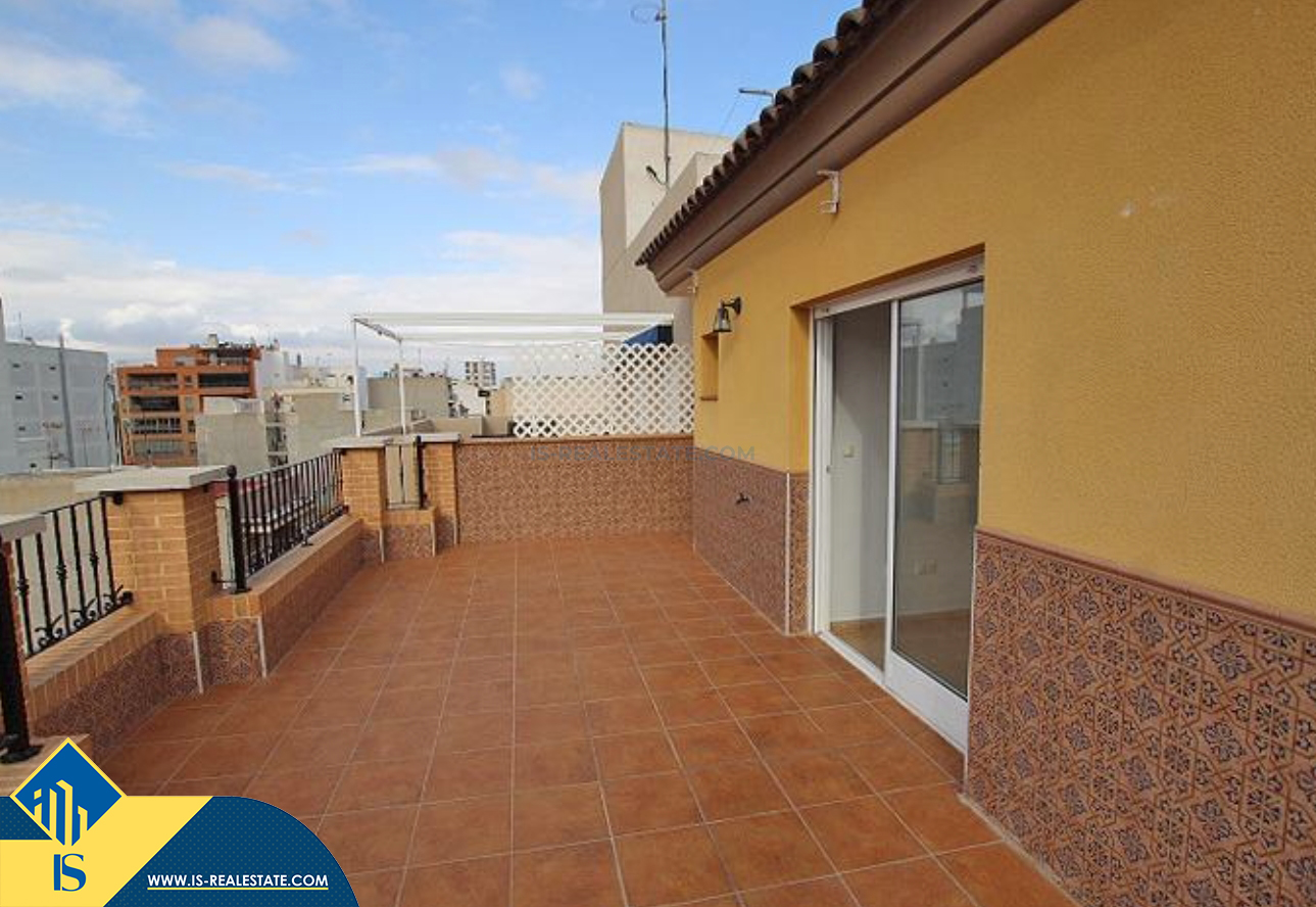 4-ių kambarių duplex penthouse apartamentas su terasa, Ispanijoje, Alicante provincijoje, Guardamar del Segura mieste, bendras plotas 107 m², 600 metrų iki jūros, 32 kilometrai iki Alicante oro uosto. Turtui priklauso terasa, liftas, sandėliukas. Netoli turto yra parduotuvės, restoranai, autobusų stotelės, degalinės, žalios zonos, kavinės, vaistinės.