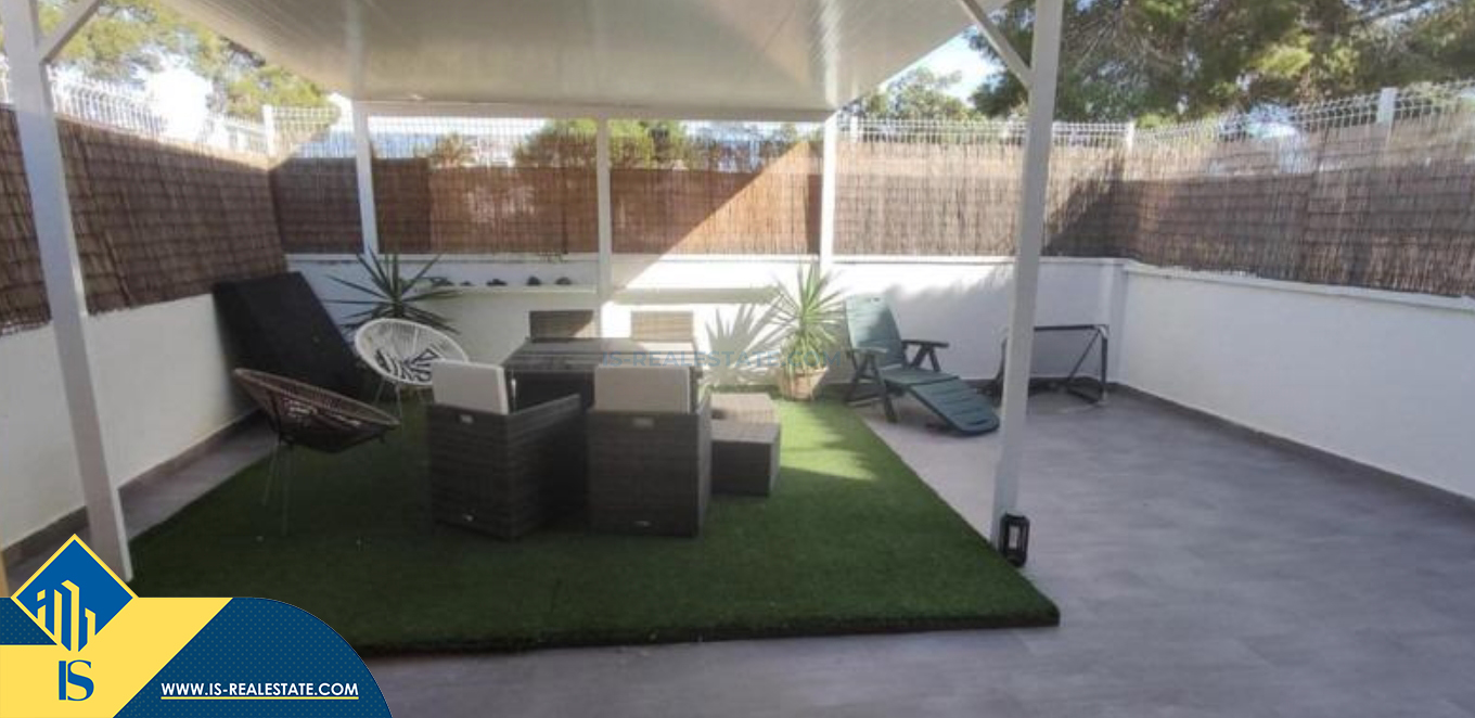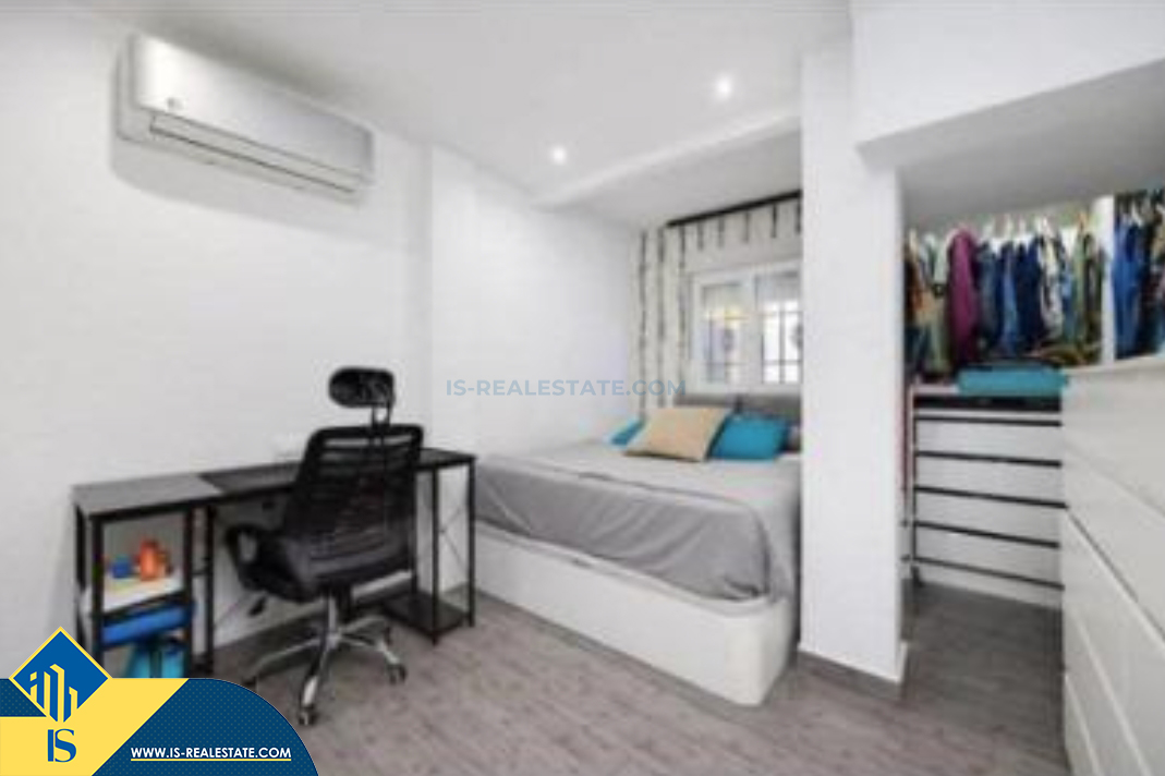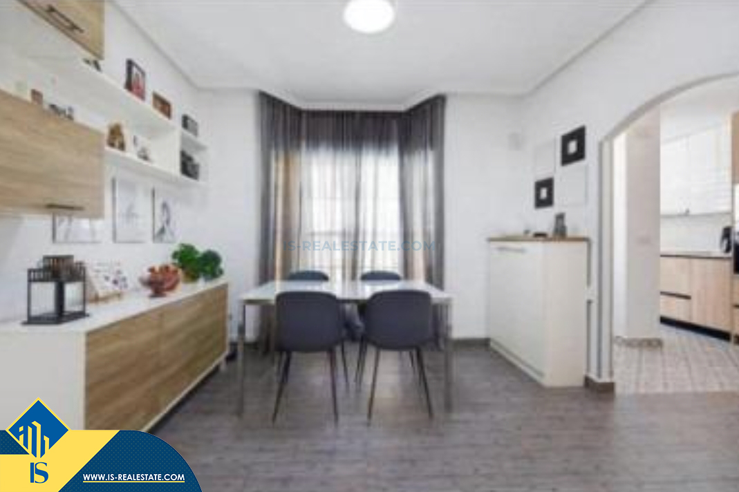 4-ių kambarių renovuotas namas su bendru baseinu, Ispanijoje, Alicante provincijoje, Guardamar del Segura mieste, bendras plotas 123 m², 5 kilometrai iki jūros, 32 kilometrai iki Alicante oro uosto. Turtui priklauso bendras baseinas, terasa, soliariumas. Netoli turto yra parduotuvės, restoranai, autobusų stotelės, degalinės, žalios zonos, kavinės, vaistinės