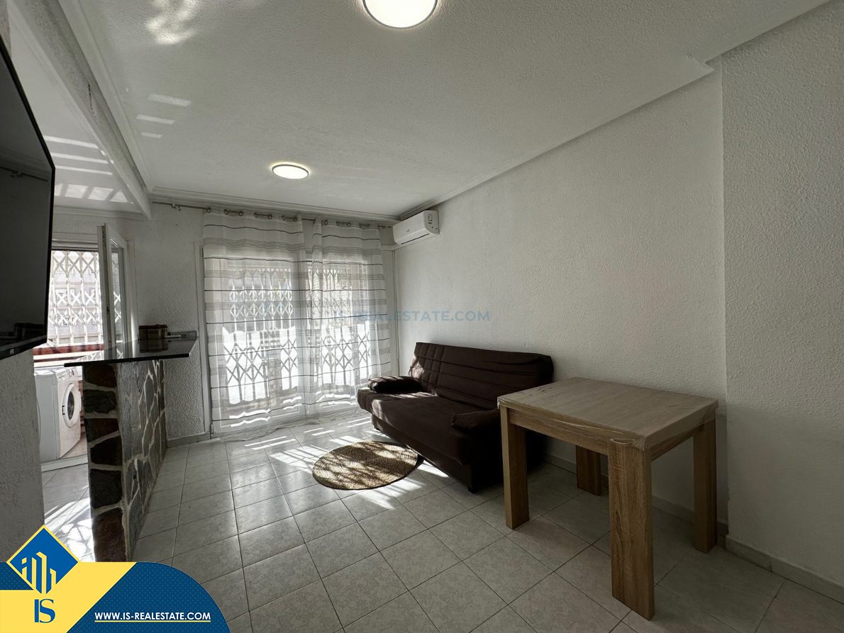 2-jų kambarių apartamentas su bendru baseinu, Ispanijoje, Alicante provincijoje, Torrevieja mieste, bendras plotas 53 m², 800 metrų iki jūros, 45 kilometrai iki Alicante oro uosto. Turtui priklauso bendras baseinas, terasa. Netoli turto yra parduotuvės, restoranai, vaistinės, autobusų stotelės, degalinės, žalios zonos, kavinės