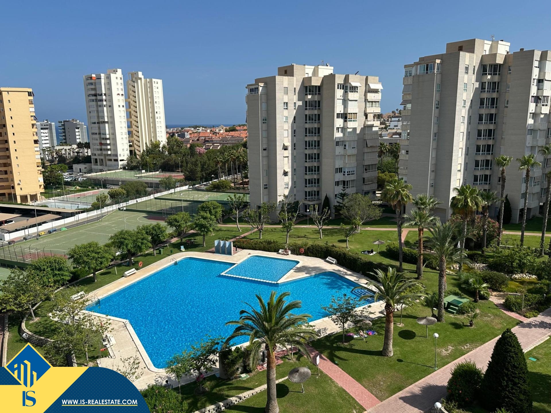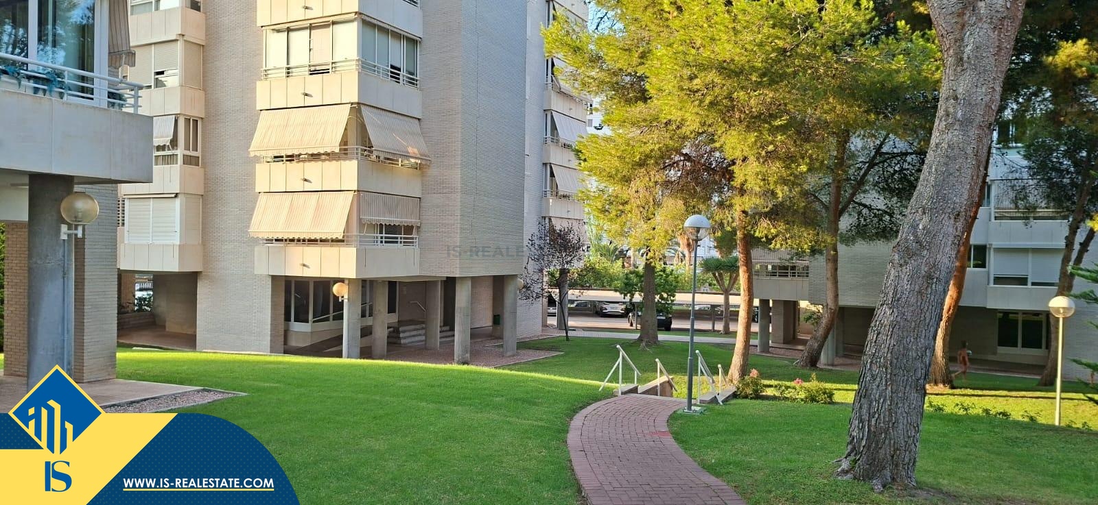 4-ių kambarių apartamentas su bendru baseinu, Ispanijoje, Alicante provincija, Alicante mieste, bendras plotas 100 m², 600 metrų iki jūros, 18 kilometrų iki Alicante miesto oro uosto. Netoli turto yra parduotuvės, restoranai, vaistinės, autobusų stotelės, degalinės, žalios zonos, kavinės