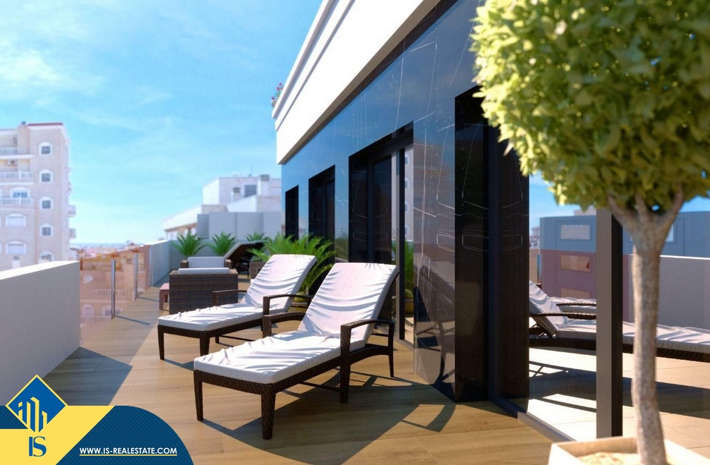 2-jų kambarių statomi apartamentai, Ispanijoje, Alicante provincijoje, Torrevieja mieste, bendras plotas 90 m², 700 metrų iki jūros, 45 kilometrai iki Alicante miesto oro uosto. Turtui priklauso bendras baseinas, soliariumas, vieta automobiliui. Netoli turto yra parduotuvės, restoranai, autobusų stotelės, degalinės, žalios zonos, kavinės, vaistinės, Habaneras alėja