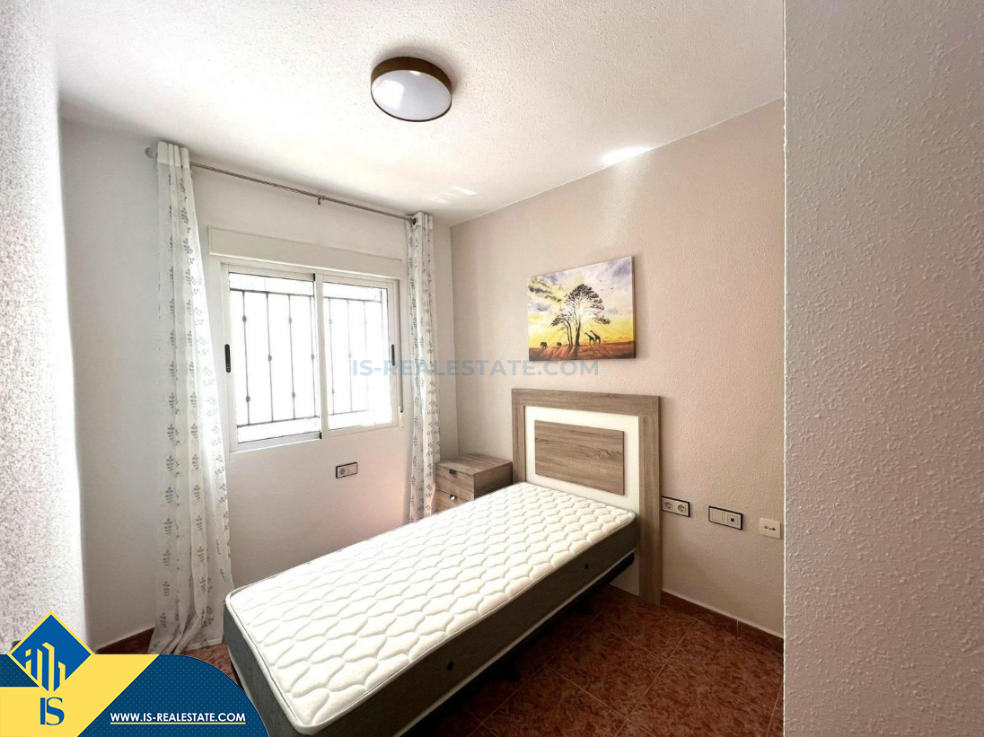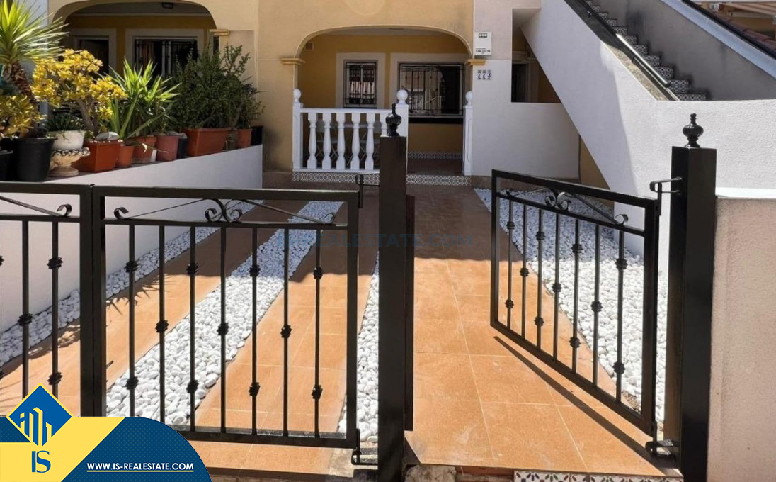 3-jų kambarių bungalas su terasa, Ispanijoje, Alicante provincijoje, Torrevieja mieste, Los Balcones rajone, bendras plotas 62 m², 4 kilometrai iki jūros, 45 kilometrai iki Alicante oro uosto. Turtui priklauso terasa, vieta automobiliui. Netoli turto yra parduotuvės, restoranai, autobusų stotelės, vaikų zonos, degalinės, žalios zonos, kavinės