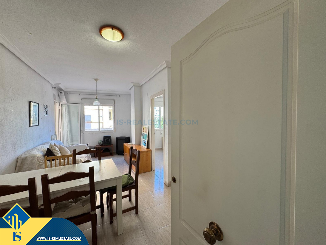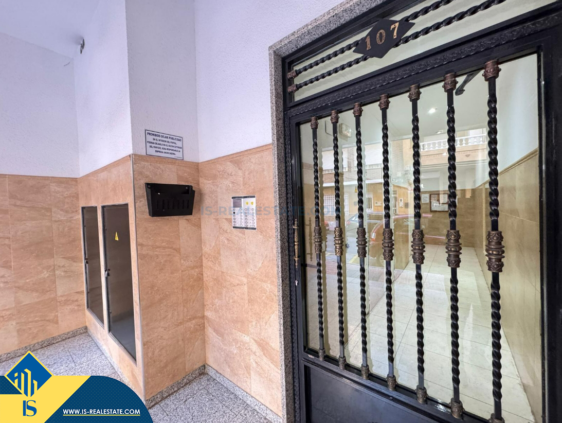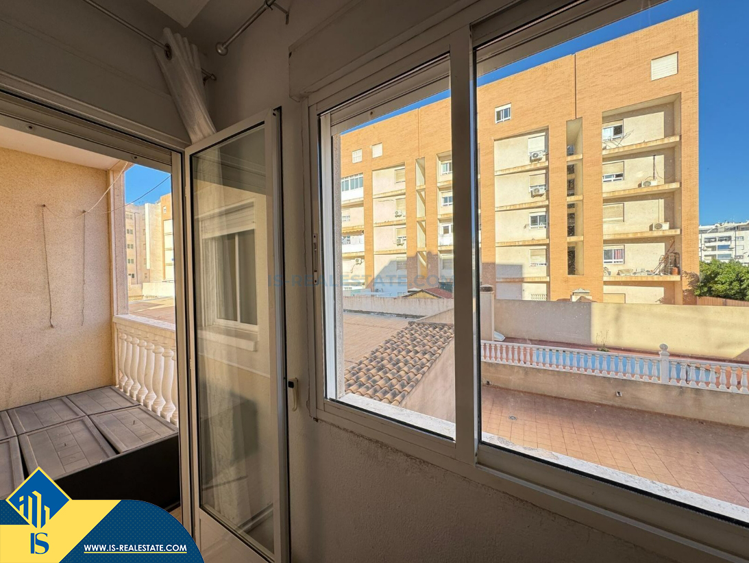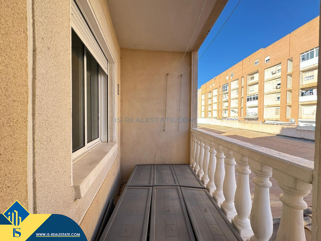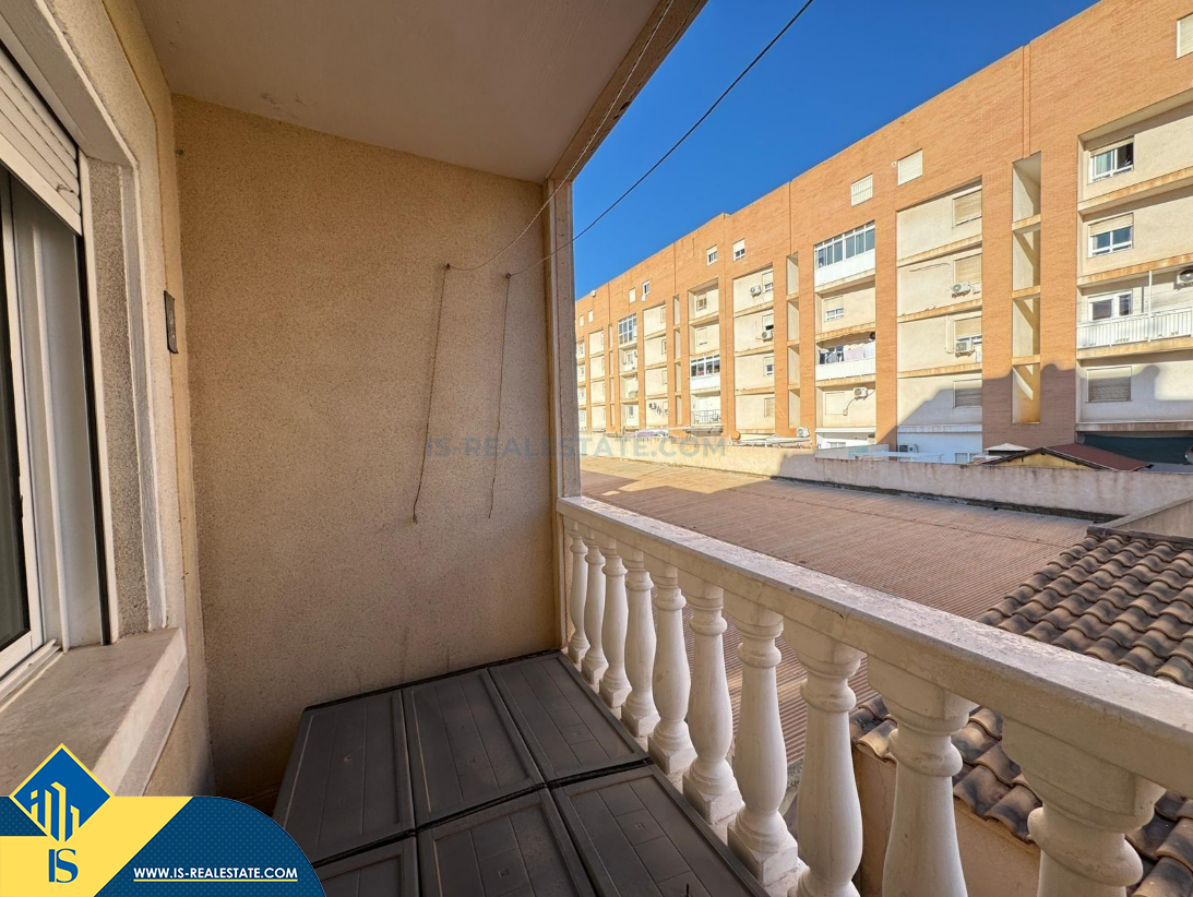 3-jų kambarių apartamentas su terasa, Ispanijoje, Alicante provincijoje, Torrevieja mieste, bendras plotas 63 m², 400 metrų iki jūros, 45 kilometrai iki Alicante oro uosto. Turtui priklauso terasa, liftas. Netoli turto yra parduotuvės, restoranai, vaistinės, autobusų stotelės, degalinės, žalios zonos, kavinės