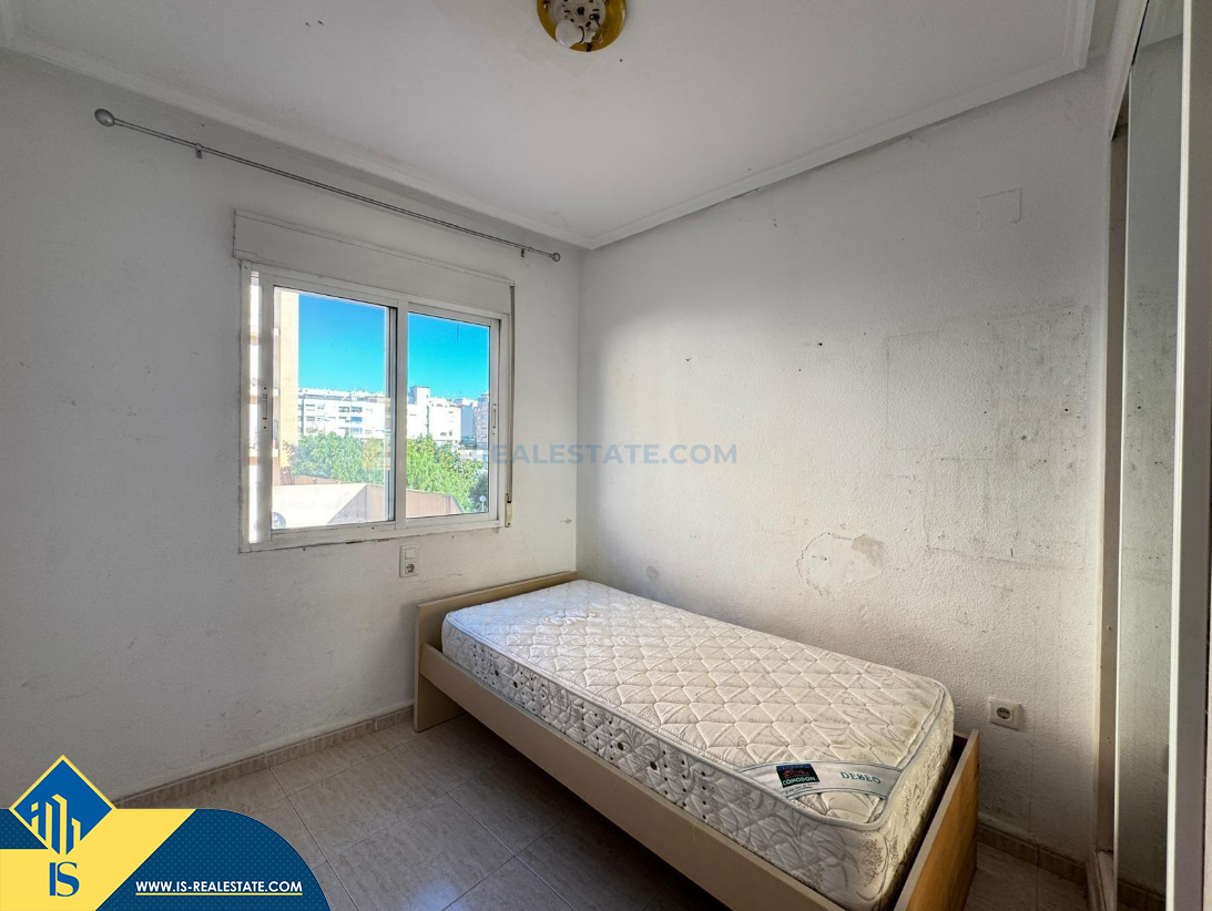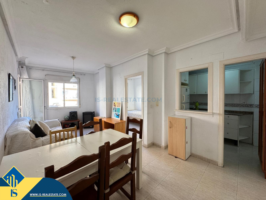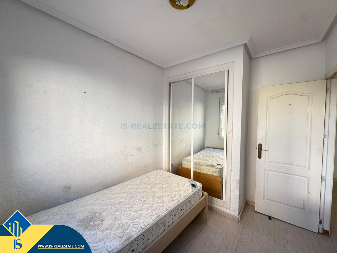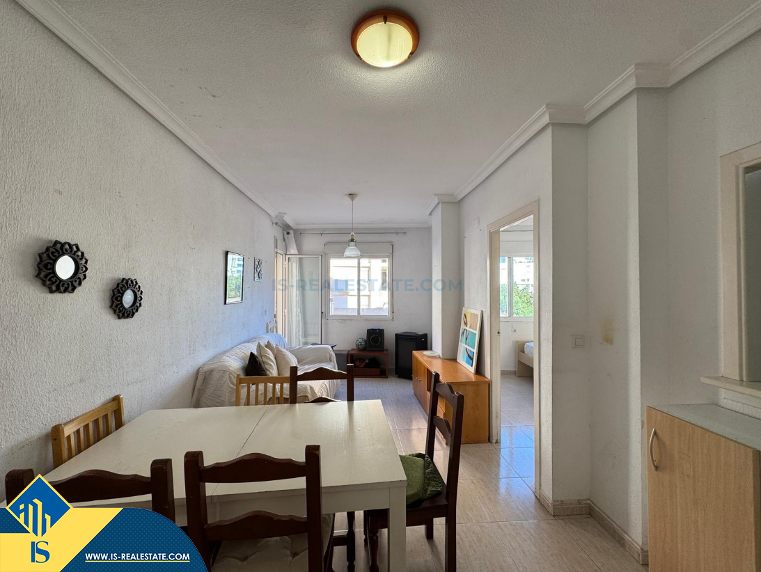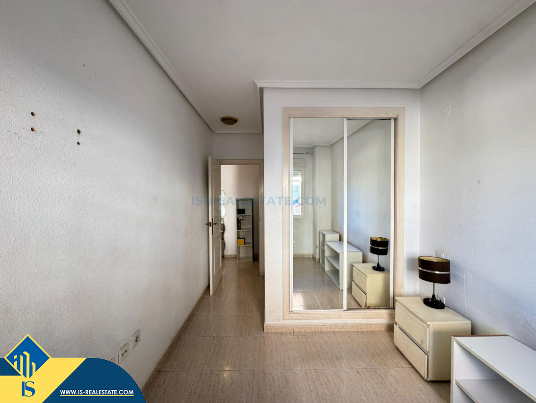 3-jų kambarių apartamentas su terasa, Ispanijoje, Alicante provincijoje, Torrevieja mieste, bendras plotas 63 m², 400 metrų iki jūros, 45 kilometrai iki Alicante oro uosto. Turtui priklauso terasa, liftas. Netoli turto yra parduotuvės, restoranai, vaistinės, autobusų stotelės, degalinės, žalios zonos, kavinės