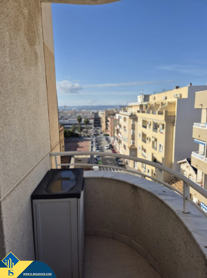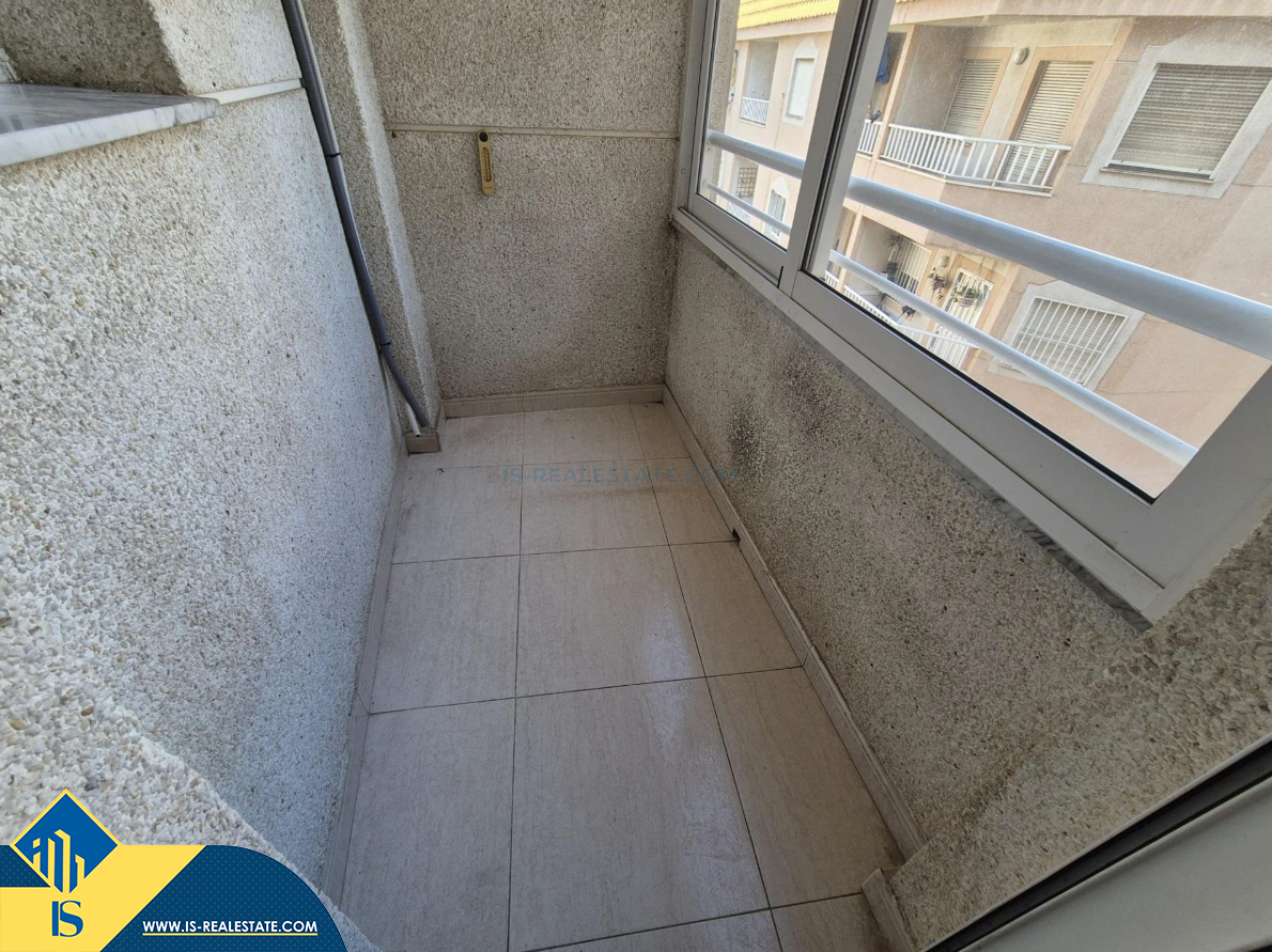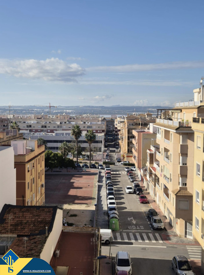 4-ių kambarių apartamentas su terasa, Ispanijoje, Alicante provincijoje, Torrevieja mieste, bendras plotas 84 m², 1.4 kilometro iki jūros, 45 kilometrai iki Alicante oro uosto. Turtui priklauso terasa, balkonas, liftas. Netoli turto yra parduotuvės, restoranai, vaistinės, autobusų stotelės, degalinės, žalios zonos, kavinės
