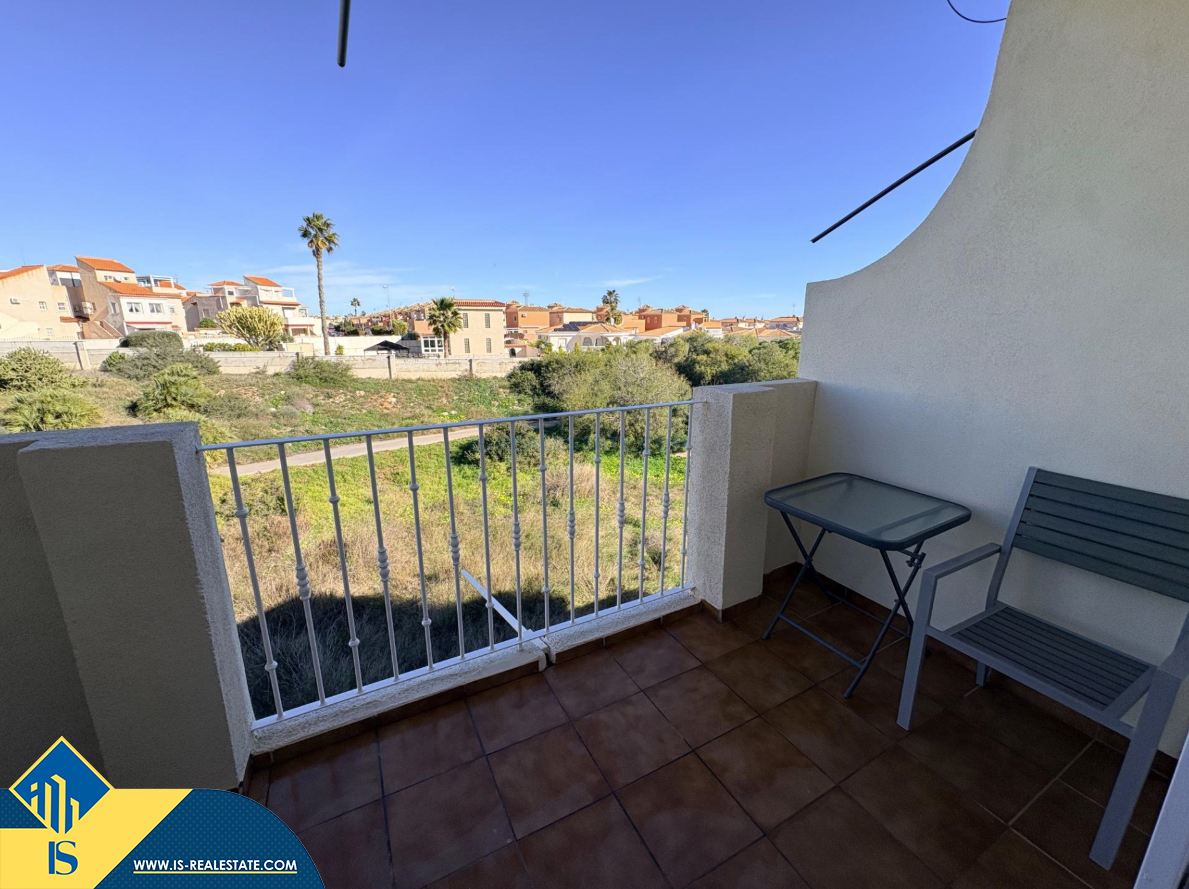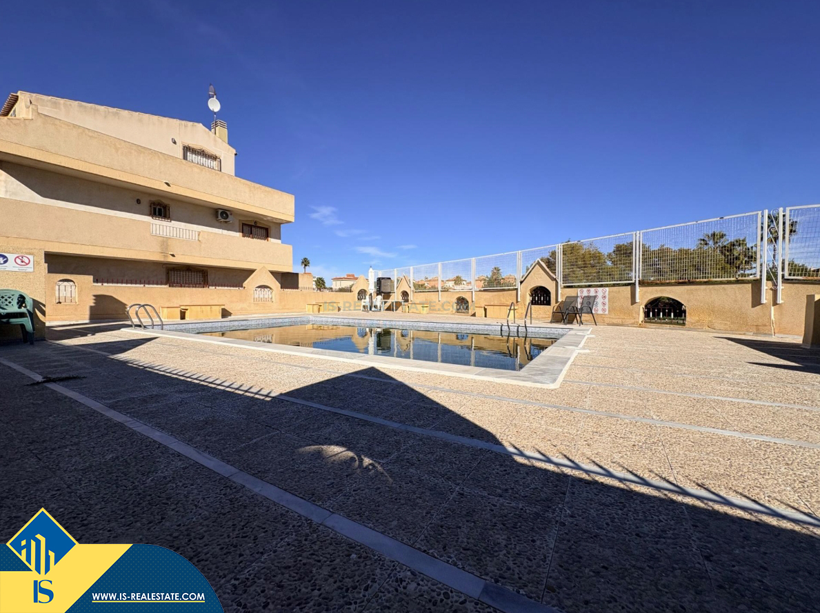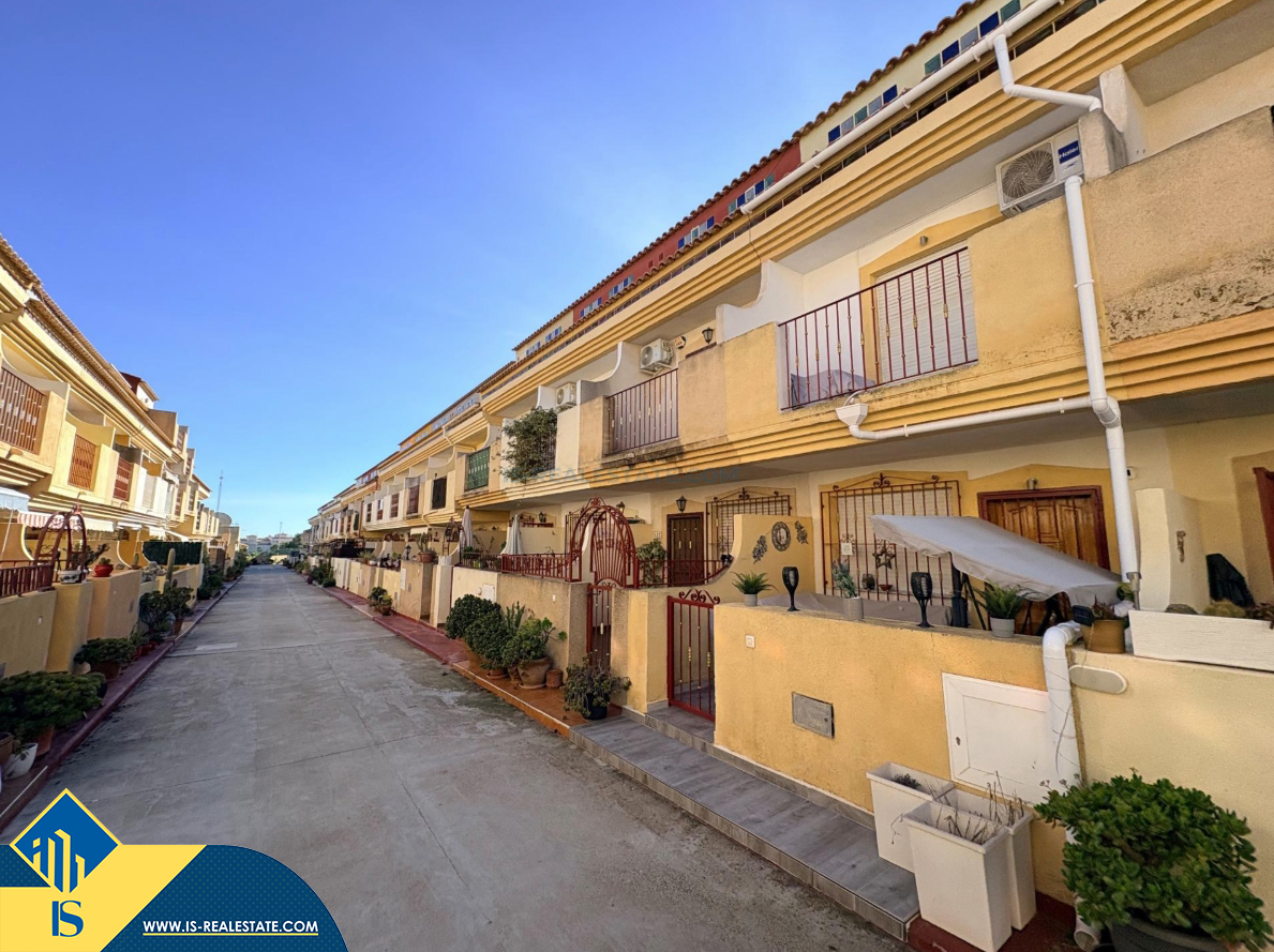 4-ių kambarių namas su bendru baseinu, Ispanijoje, Alicante provincijoje, Orihuela Costa mieste, bendras plotas 105 m², 1.5 kilometro iki jūros, 57 kilometrai iki Alicante oro uosto. Turtui priklauso bendras baseinas, terasa. Netoli turto yra parduotuvės, restoranai, autobusų stotelės, vaikų zonos, degalinės, žalios zonos, kavinės, ligoninė