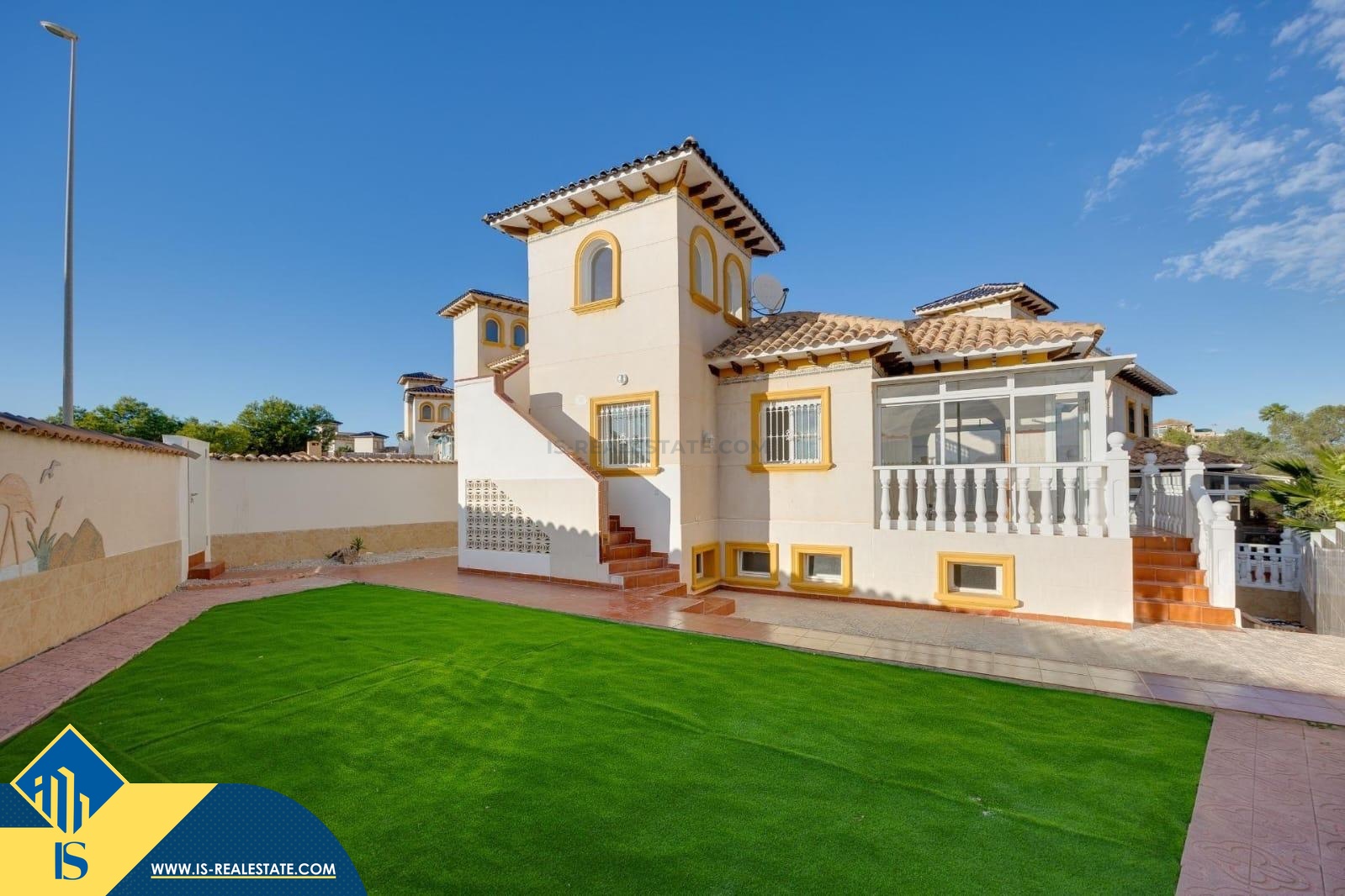5-ių kambarių vila su privačiu baseinu, Ispanijoje, Alicante provincijoje, Orihuela Costa mieste, bendras plotas 125 m², 1.5 kilometrai iki jūros, 57 kilometrai iki Alicante oro uosto. Turtui priklauso privatus baseinas, terasa, vieta automobiliui, privatus kiemas. Netoli turto yra parduotuvės, restoranai, autobusų stotelės, vaikų zonos, degalinės, žalios zonos, kavinės, ligoninė
